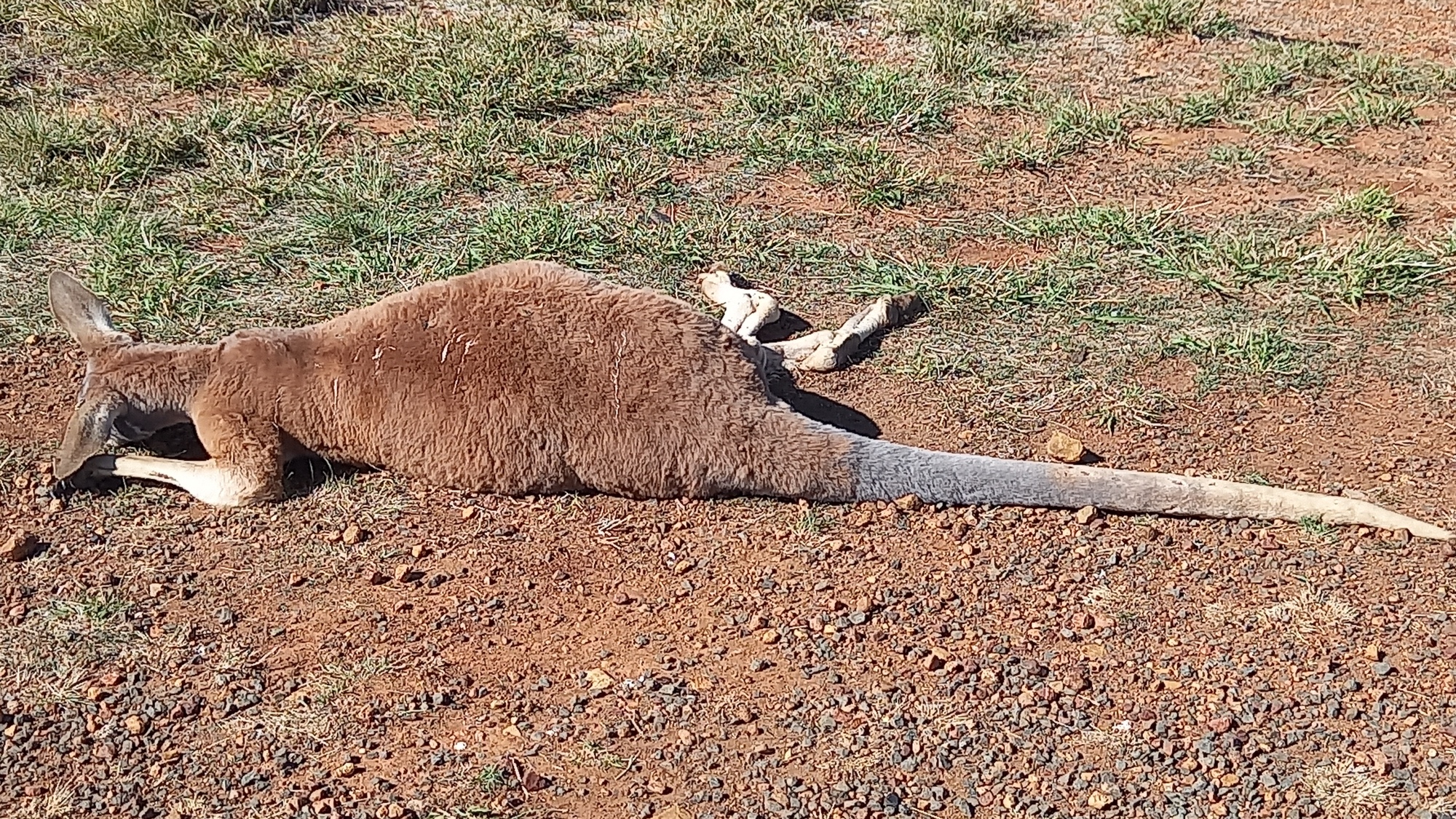 I was finally heading to Cunnamulla on a road littered with dead red kangaroos and emus. I did, at least, see lots of live emus and several western grey kangaroos. I cycled very well and did 70 km before stopping to eat a heap of gingernuts and pour down cordial.