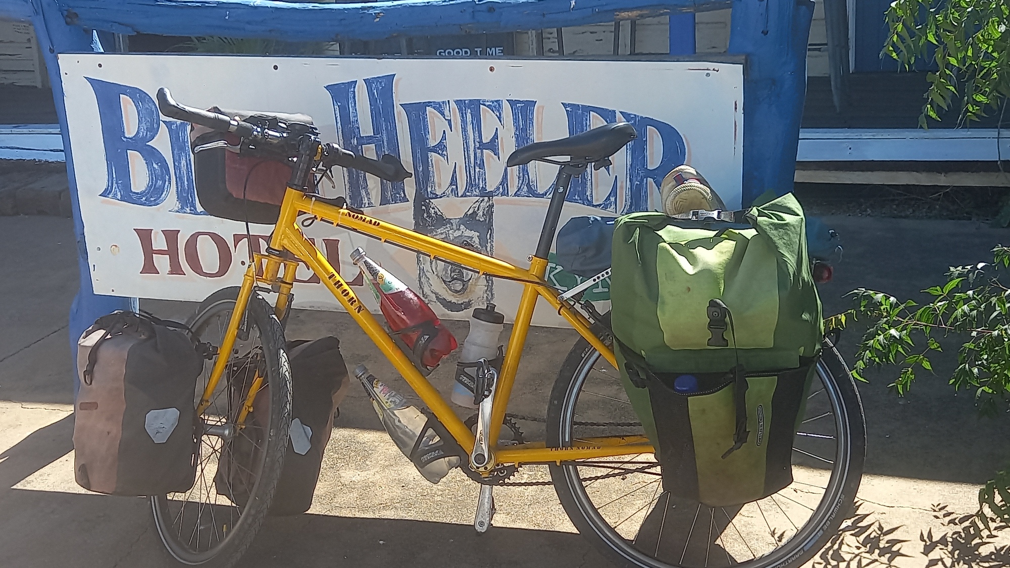 I was greeted outside the "Blue Heeler", a famous outback pub, by a brolga. I was under strict instructions from old friend, John, not to just buy the sticker. I obliged and stayed for some time.
