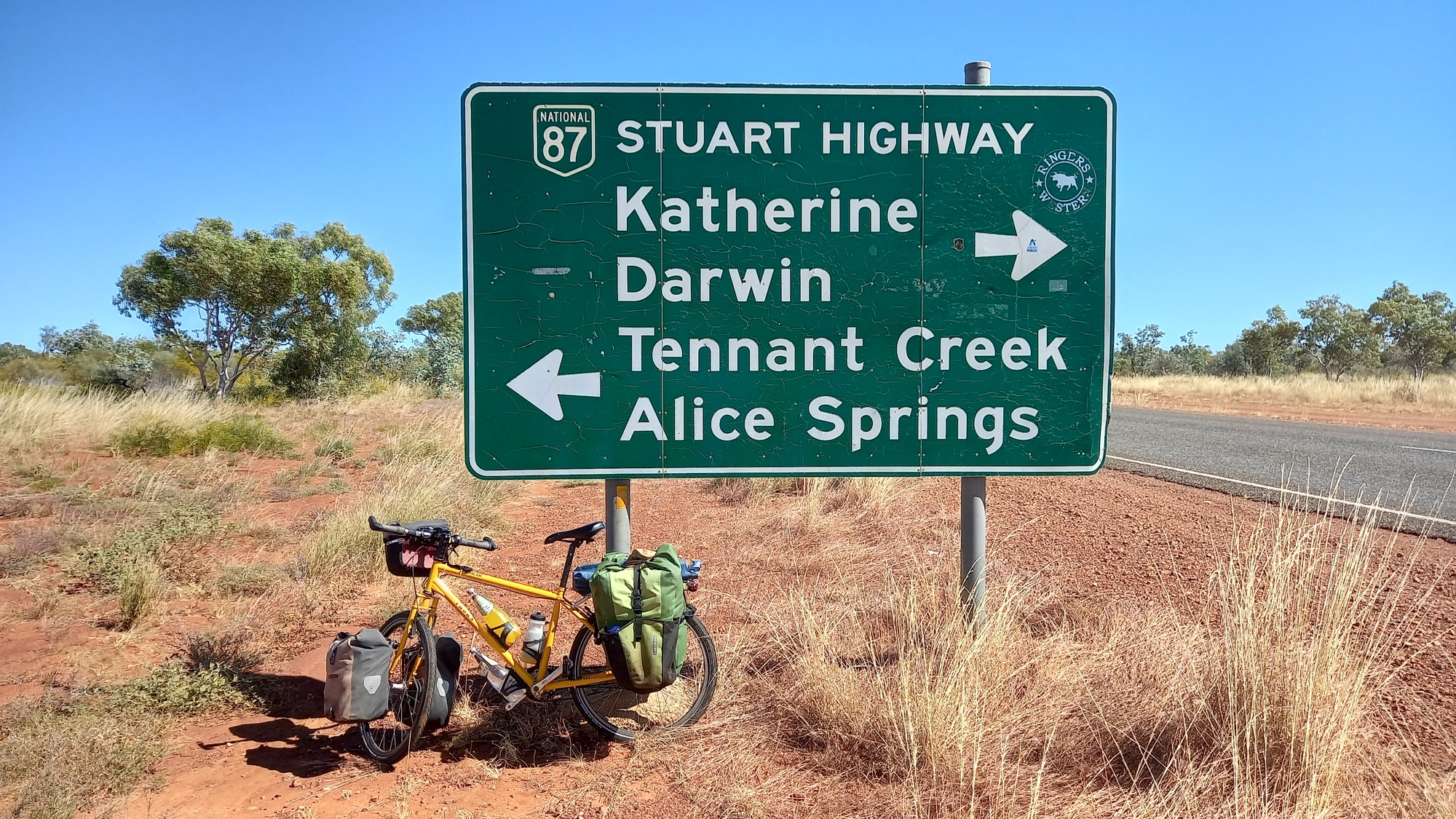 Simple stuff today - cycle the 78 km to Threeways, have a bite and find somewhere secure to leave my bike. I'd then hitch the 25 km south to Tennant Creek for supplies, hitch back and start heading north towards Darwin. I might add that there are no shops for a considerable distance to the north.
