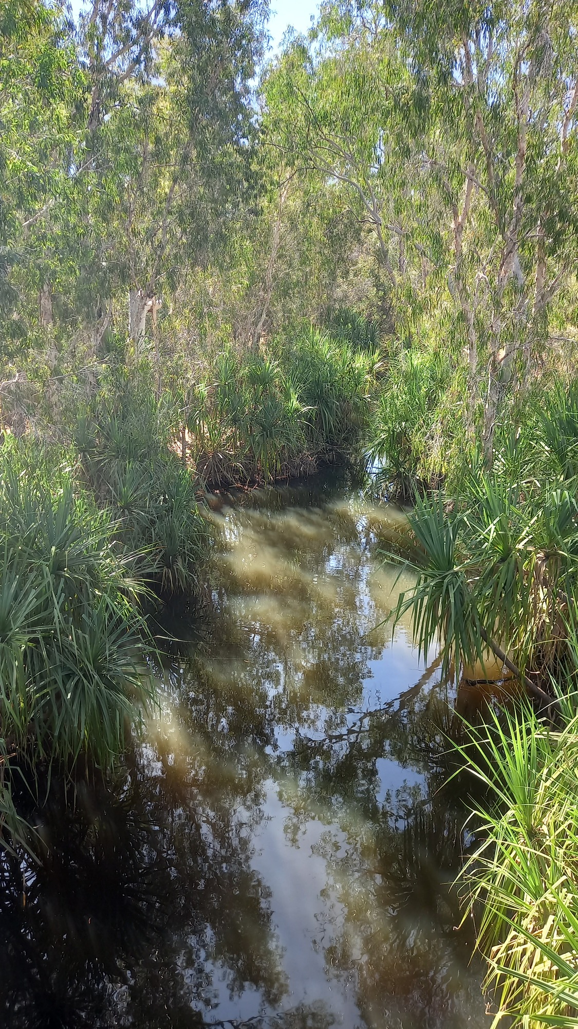 I crossed the King River and looked down and saw Pandanus. It is getting tropical, I thought. I also saw a pheasant coucal which, like its relatives, has one testicle.