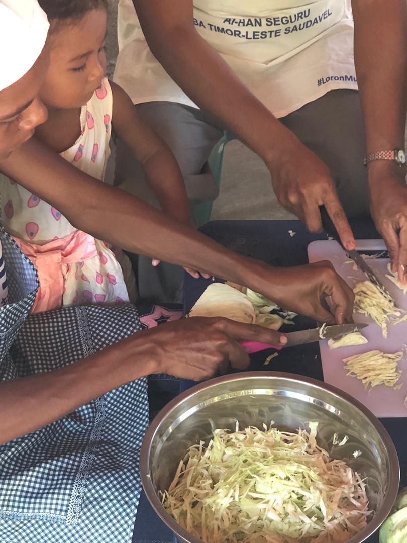 Today was very good. Like yesterday, I traveled with JDN to a village where they cooked a meal and taught nutrition to the women. This village, Metinaru, is about 30 km east of Dili, so I cycled to JDN, and we drove from there. It was at Metinaru that I discovered that my phone didn't charge last night; chargers with adapters fall from sockets easily here! I used my camera and relied on others for photos for the blog.