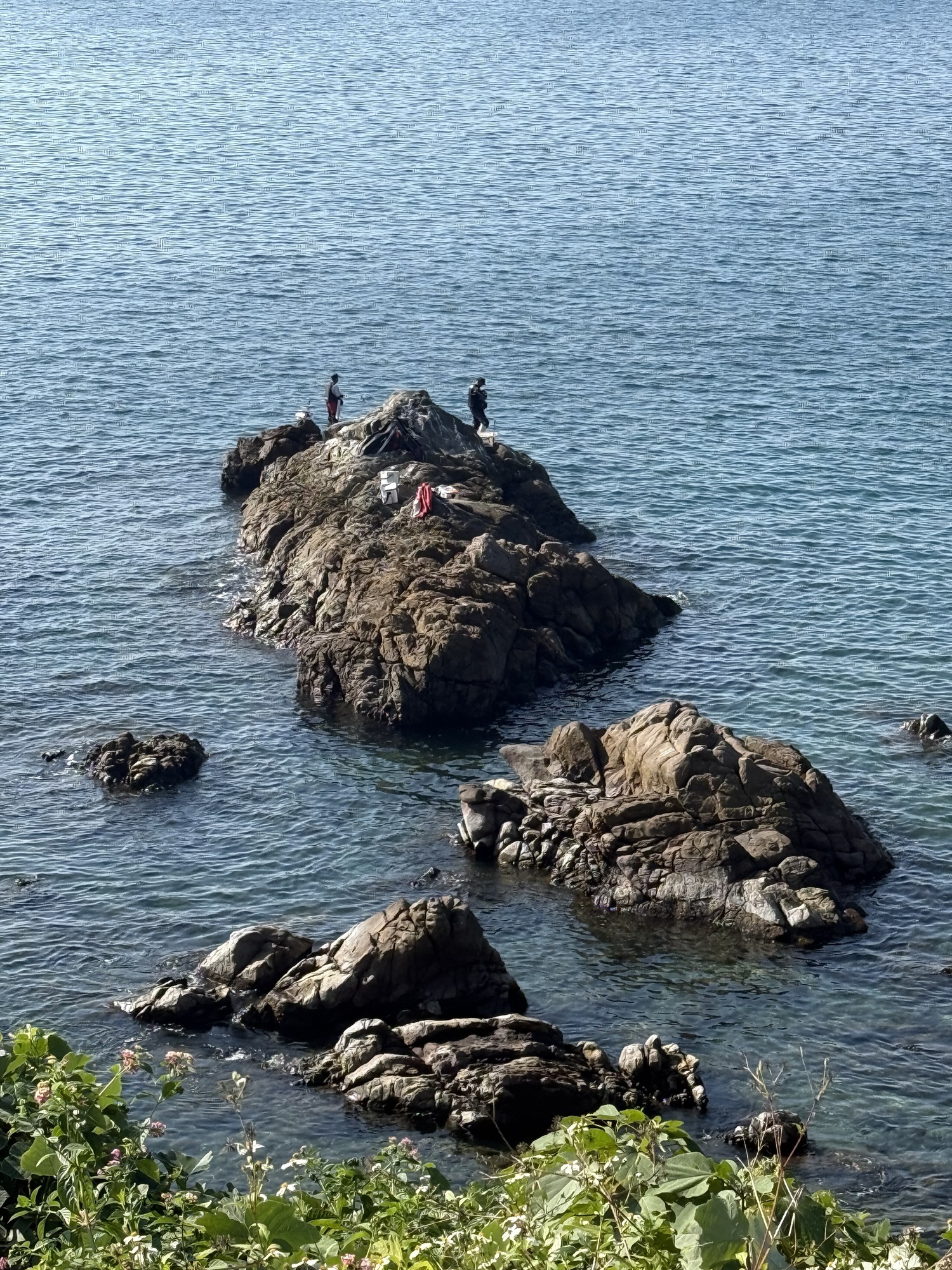 Fishers are set up on these rock outcroppings near our hotel. They have either been dropped off by a boat or they made their way out at low tide. it looks like a great place to fish as they are doing well.