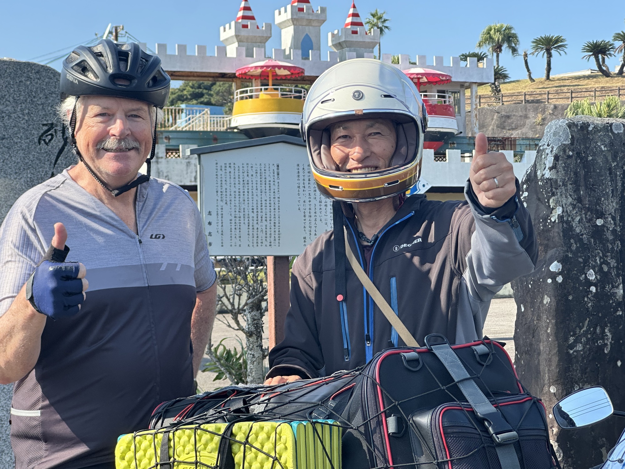 Travelling down the east coast of Kyushu has been an incredible experience.. Every day we have been blown away by the endless beauty of this coastline. We are grateful that we changed our route from riding the coast of Shikoku (we were worried that the hills would be too much for ME's knees) to riding this coast, an area that is new to us. Once we finish our ride today, we will have circumnavigated the complete island of Kyushu. We will return here one day as Kyushu is a place we love.