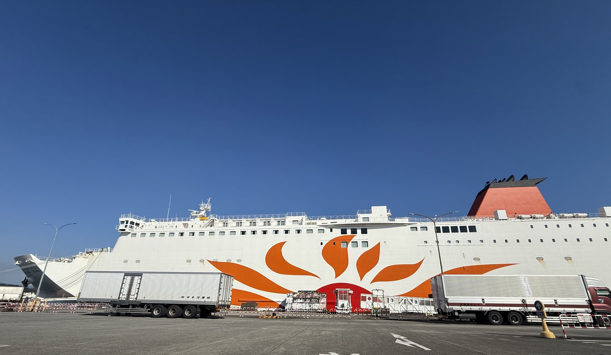 We were happy to see that the ship we will be taking is in port. Lucky us…it looks like it is a new ship. We do like the Sunflower line of ferries. Their ships are nicely appointed and have great food in the dining room.