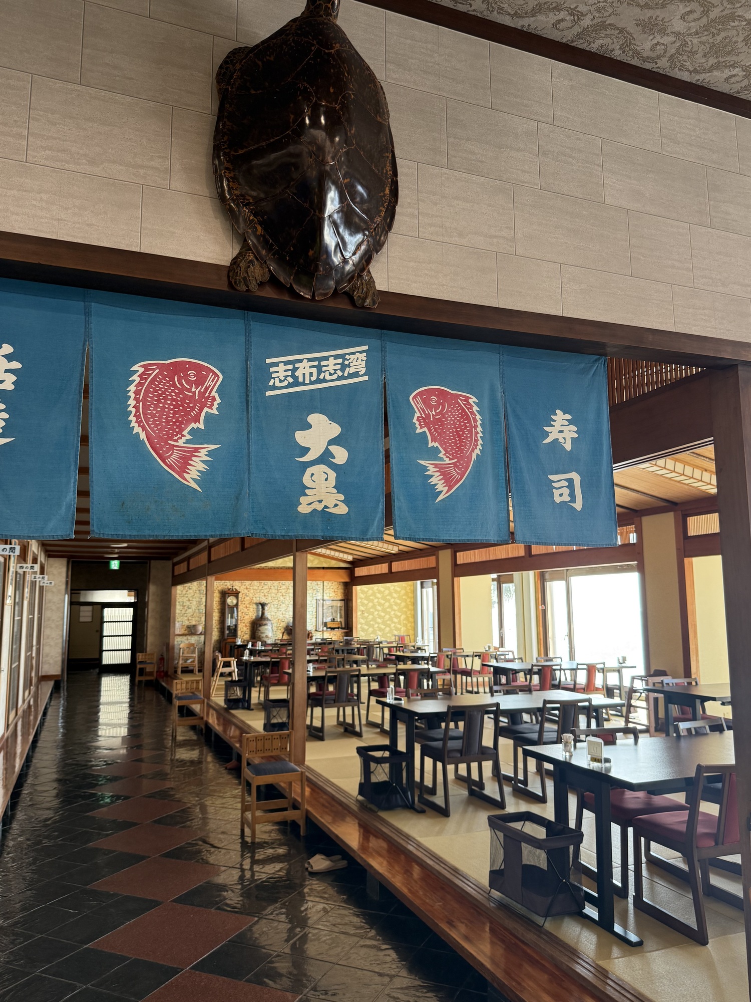 Fresh seafood and fine dining is a feature of this hotel. There are 3 large areas with western seating and primarily Japanese seating in tatami mat rooms.
