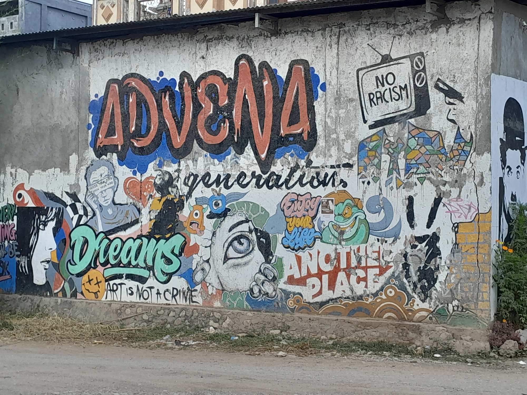 My compass told me that there was a shortcut through Kefa. There was and it took me through a bustling market, where I saw a mural that appealed.