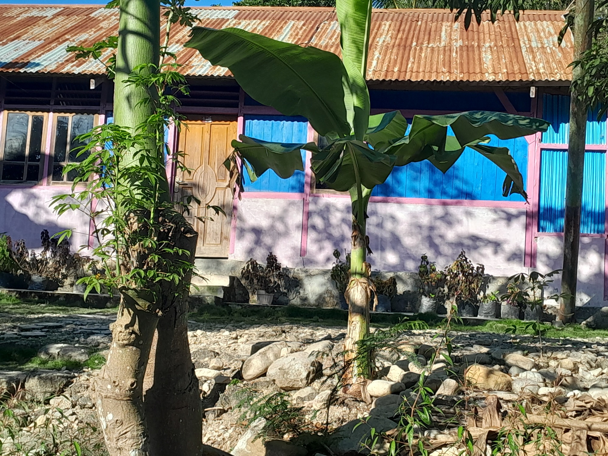 I found myself in the position, half way up a huge hill, of having not much food and nowhere to stay. I saw a "shop" and grabbed what I could - fruit and biscuits, thinking that I might be having a night doing it rough - plastic, sleeping mat, sleeping sheet and mossie net somewhere. I asked about accommodation and a fellow indicated 2 km - city. It couldn't be Soe, still 20 km. It was Niki Niki! This spurred me on and I found a reasonably sized town. But it had no accommodation. I cycled another km to the police station where I got a choice of thee rooms. I even got a stretcherbed but no WiFi. They need to lift their game!