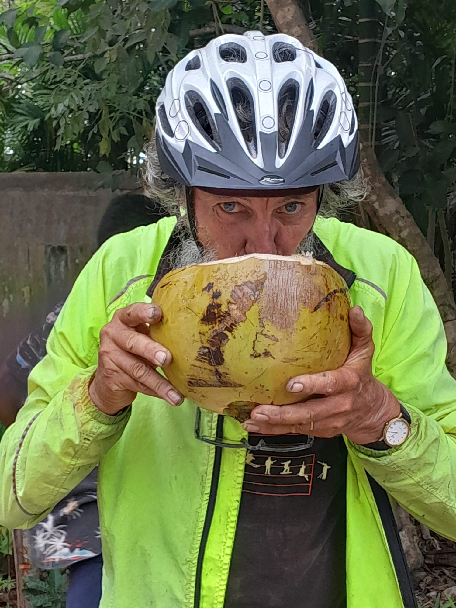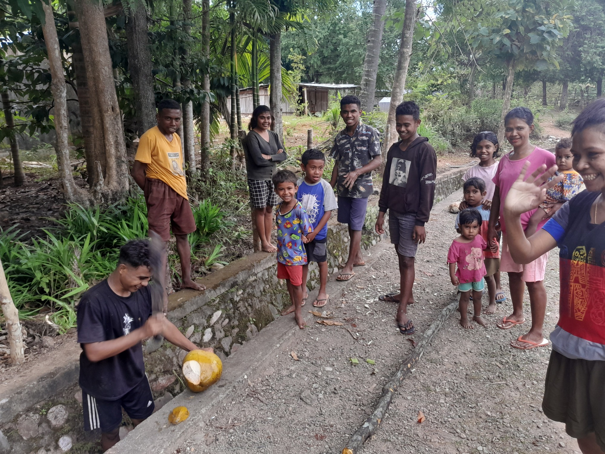 At one point I heard coconuts crashing to the ground and could just about see a fellow in the crown. I stopped to watch and quickly became the centre of attention. The locals wanted to share their custom - all good will.