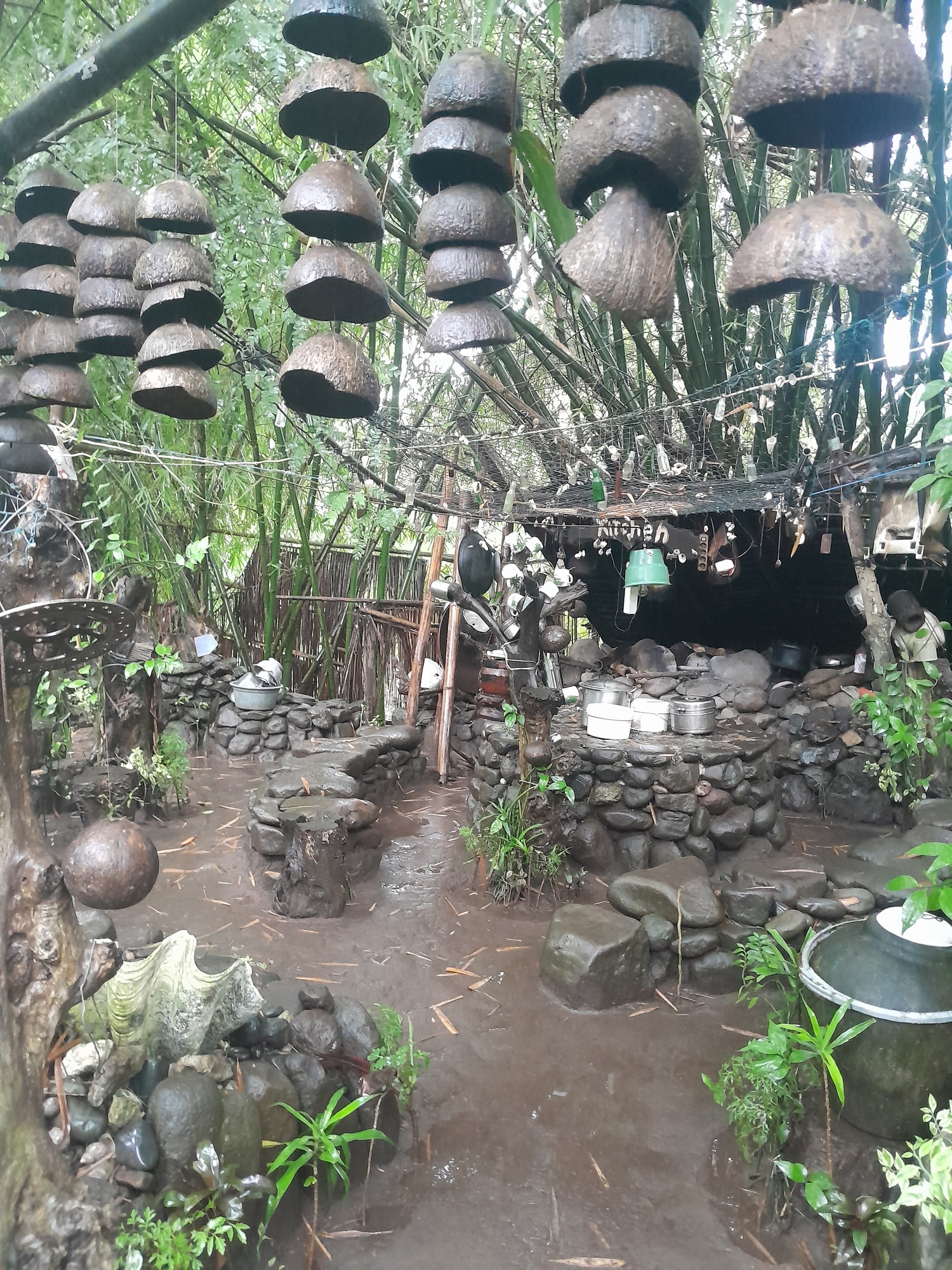 Ricky is a very interesting fellow. He builds everything himself and does his best to avoid plastic. He works hard to keep the area clean including the creek below. This morning he had an electrician helping to restore the power. They roared with laughter when I mentioned an Australian expression "white man's magic".