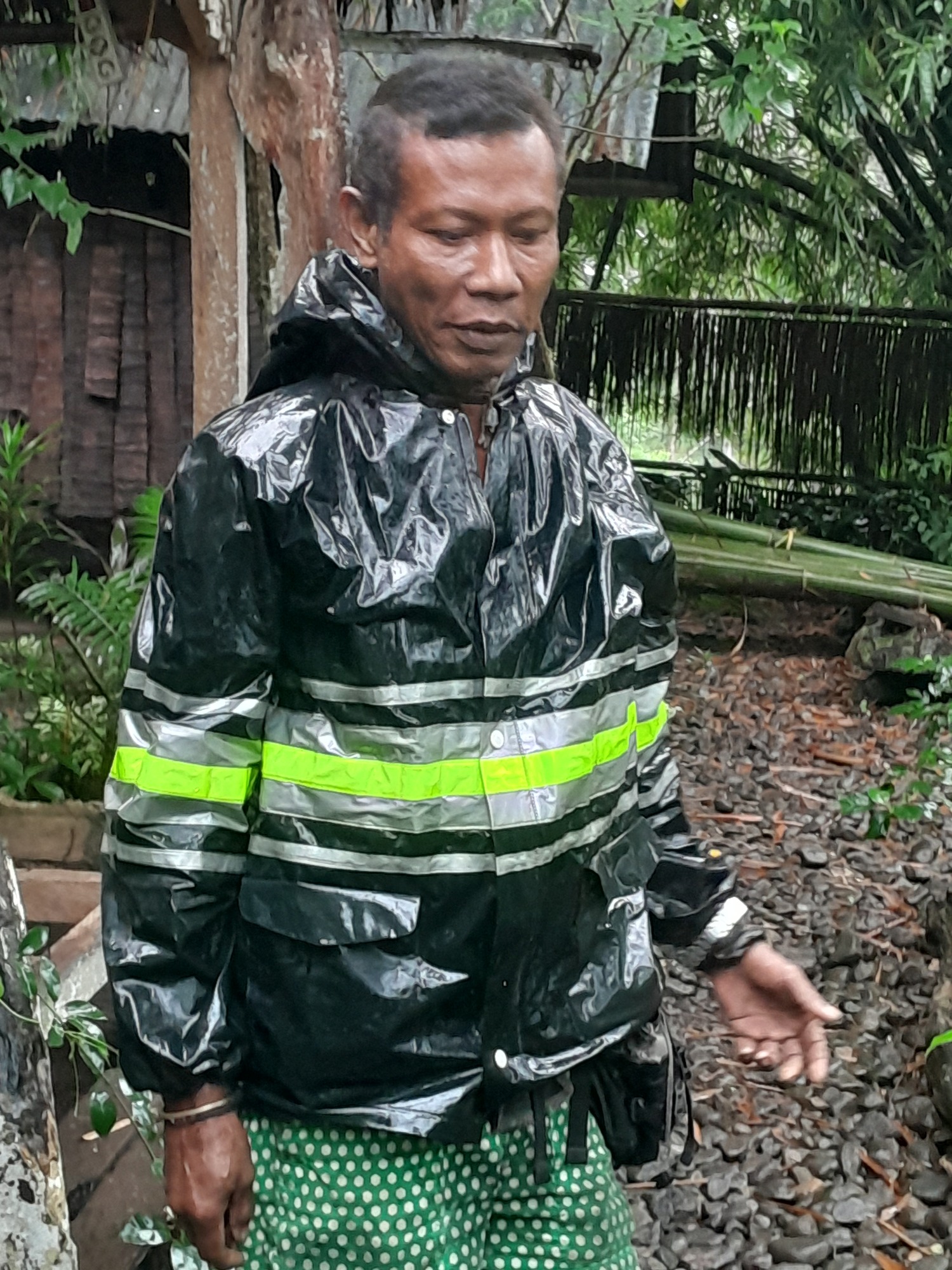 Ricky - dressed for the rain. He likes being photographed in a natural pose.