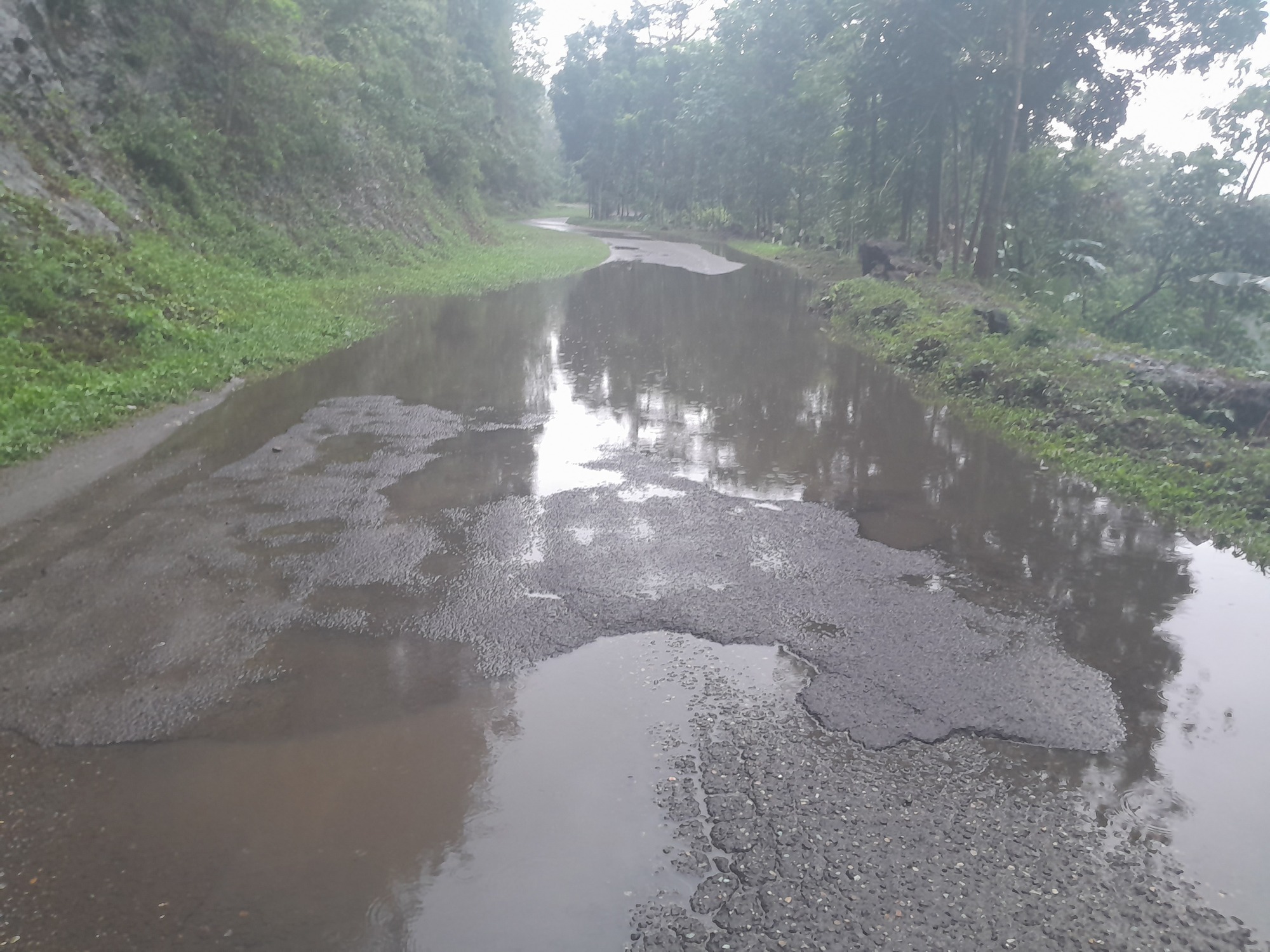 In no time, I was riding on a road with occasional sheets of water. Remember the first law of plumbing: water runs downhill.
