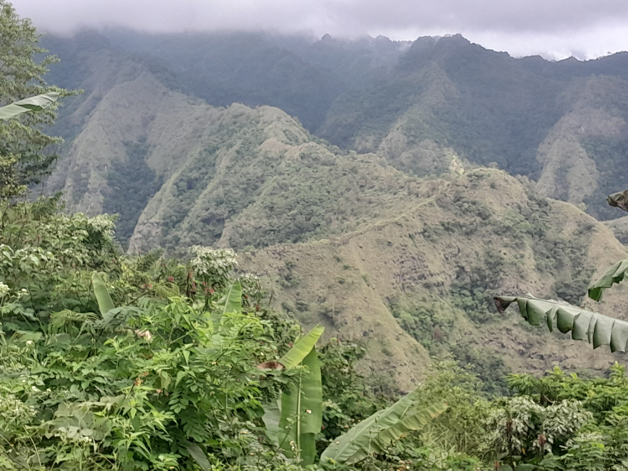 I wasn't far from the bottom when I looked to my left and saw the most rugged of ridges framed by banana leaves. That's Flores for you.