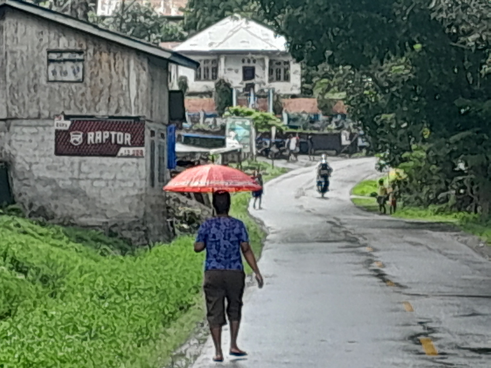 I left at 1115 and spent the afternoon aiming at numbers. The start was cruel: the road climbed before dropping back to a river. I managed to get to 56 km for the day before stopping for a few minutes. I then managed to get to 63 km before a quick cake stop. My next aim was 70, which I made, but when I looked at my watch it was 1340 and so I pushed on until 1400 and 73 km - halfway from Borong to Ruteng. This called for 15 minutes off the bike, a couple of doughnuts and three bananas.