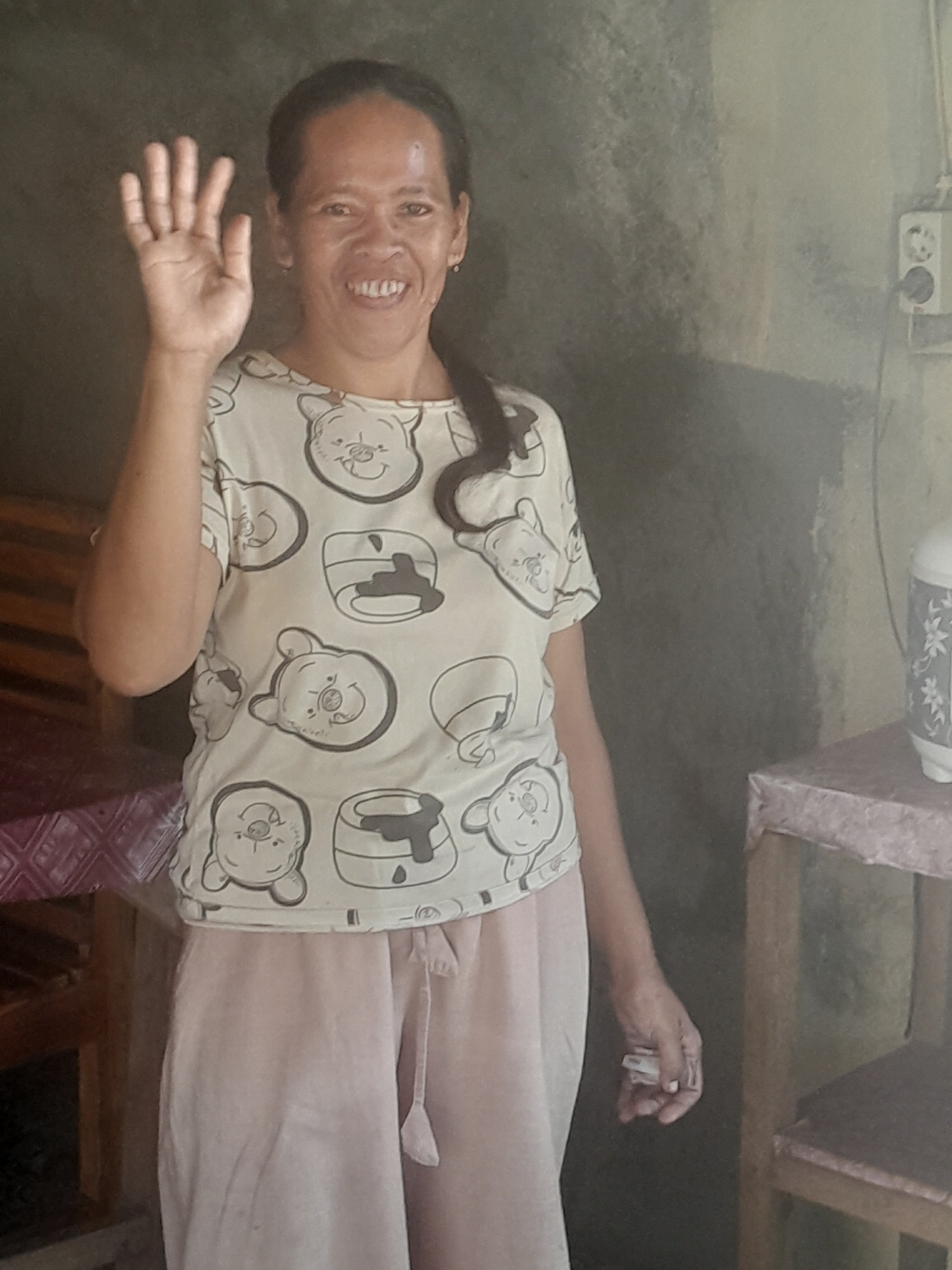 Hunger called me in after 40 km. I had a feed and a tea and a coffee at this woman's warung.
