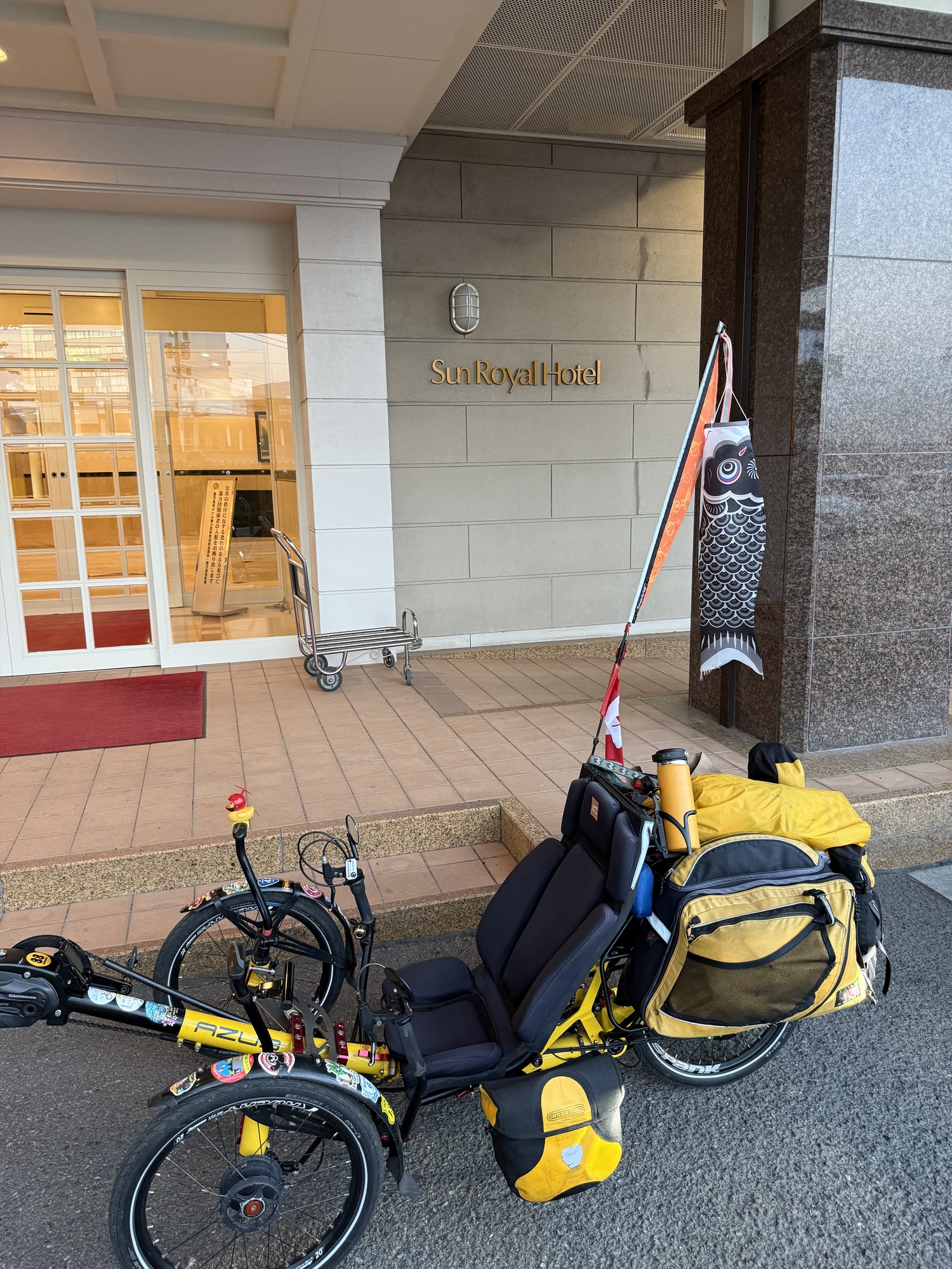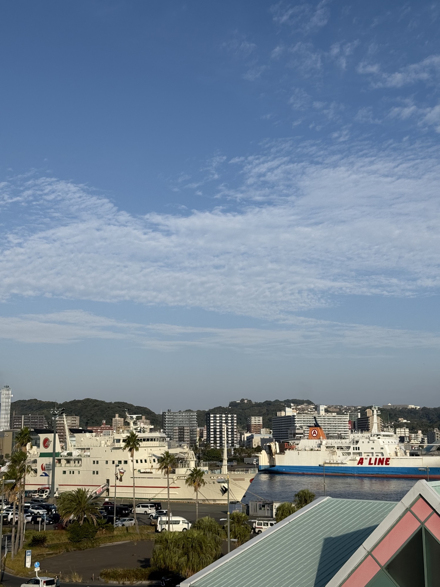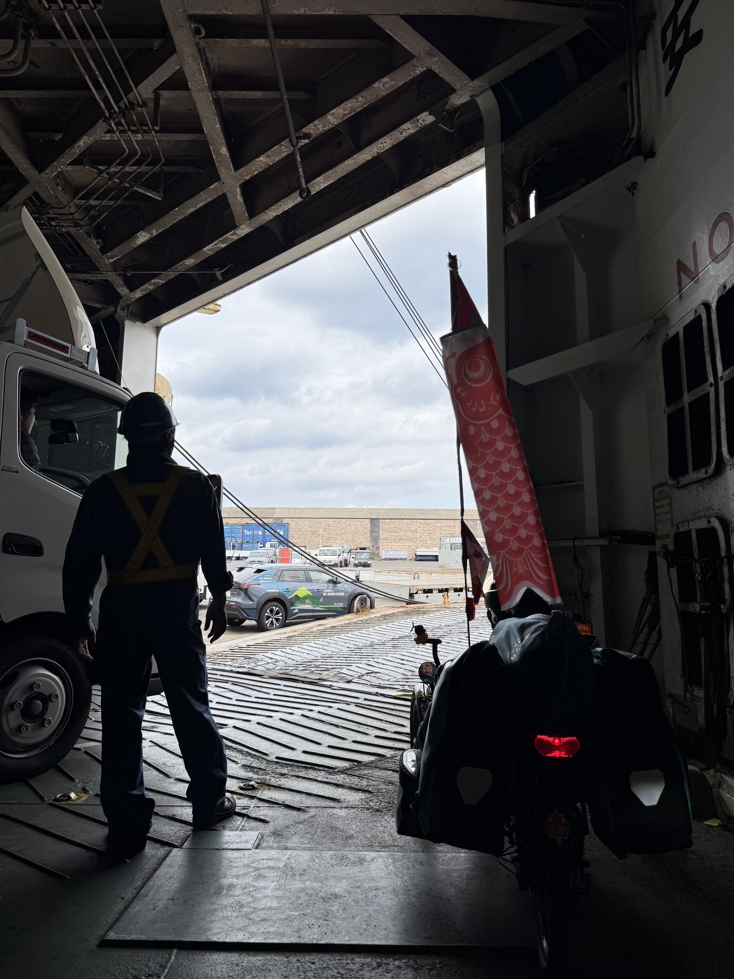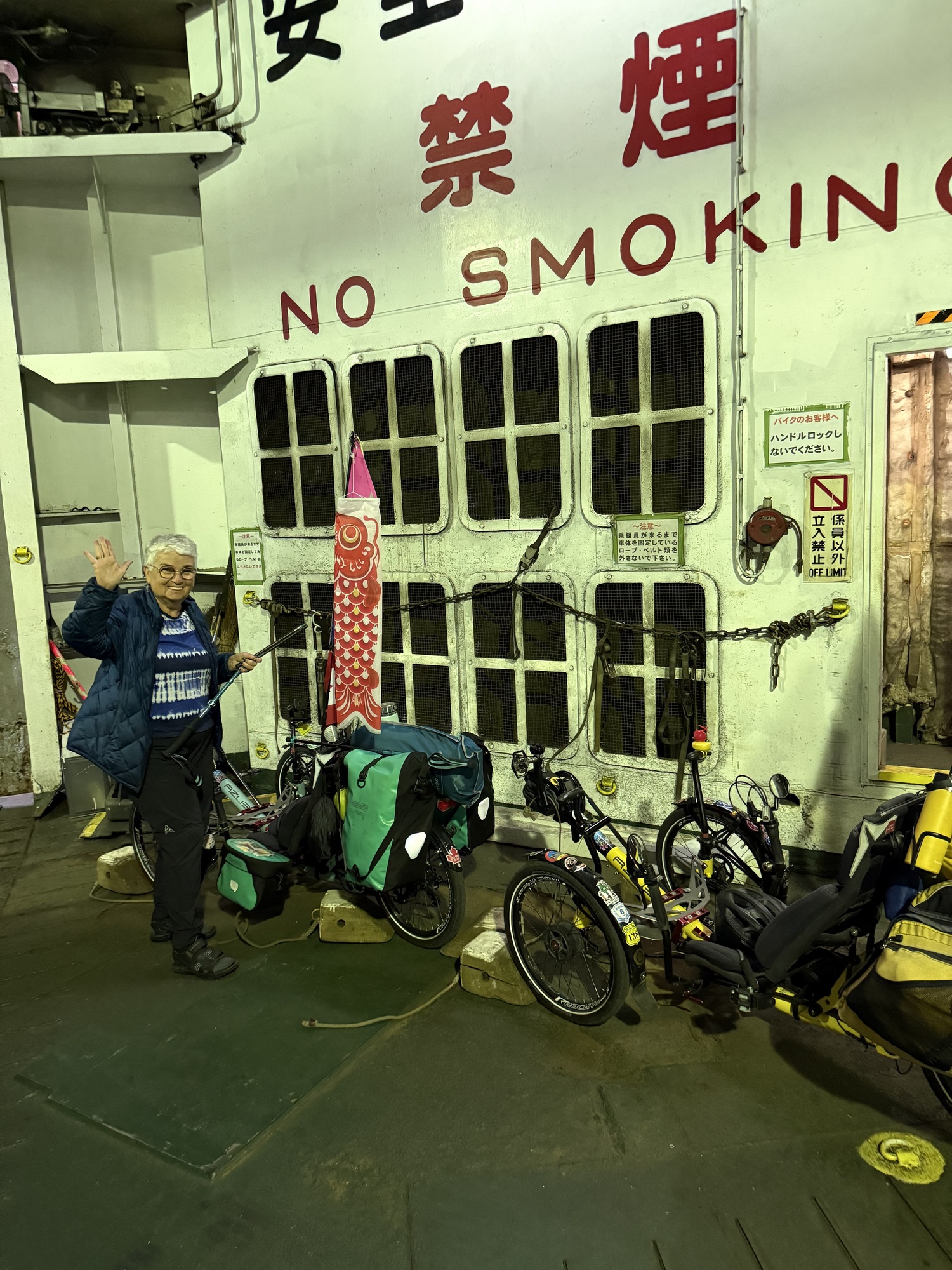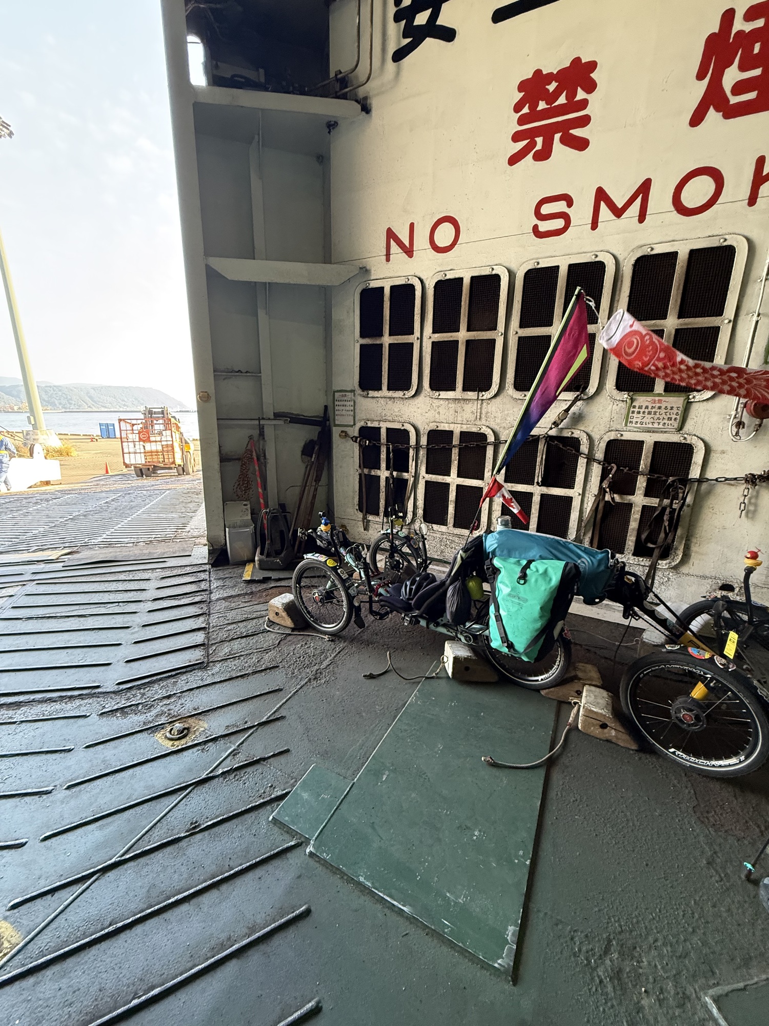 Our ferry. This ferry does 2 runs a day…the morning run to Yakushima and after a 1 hour layover load the traffic, there is a return trip to Kagoshima. We had to take the longest, 4 hour route as we need to travel with our trikes on a vessel which takes cars. A passenger only hydrofoil ferry takes 2 hours.