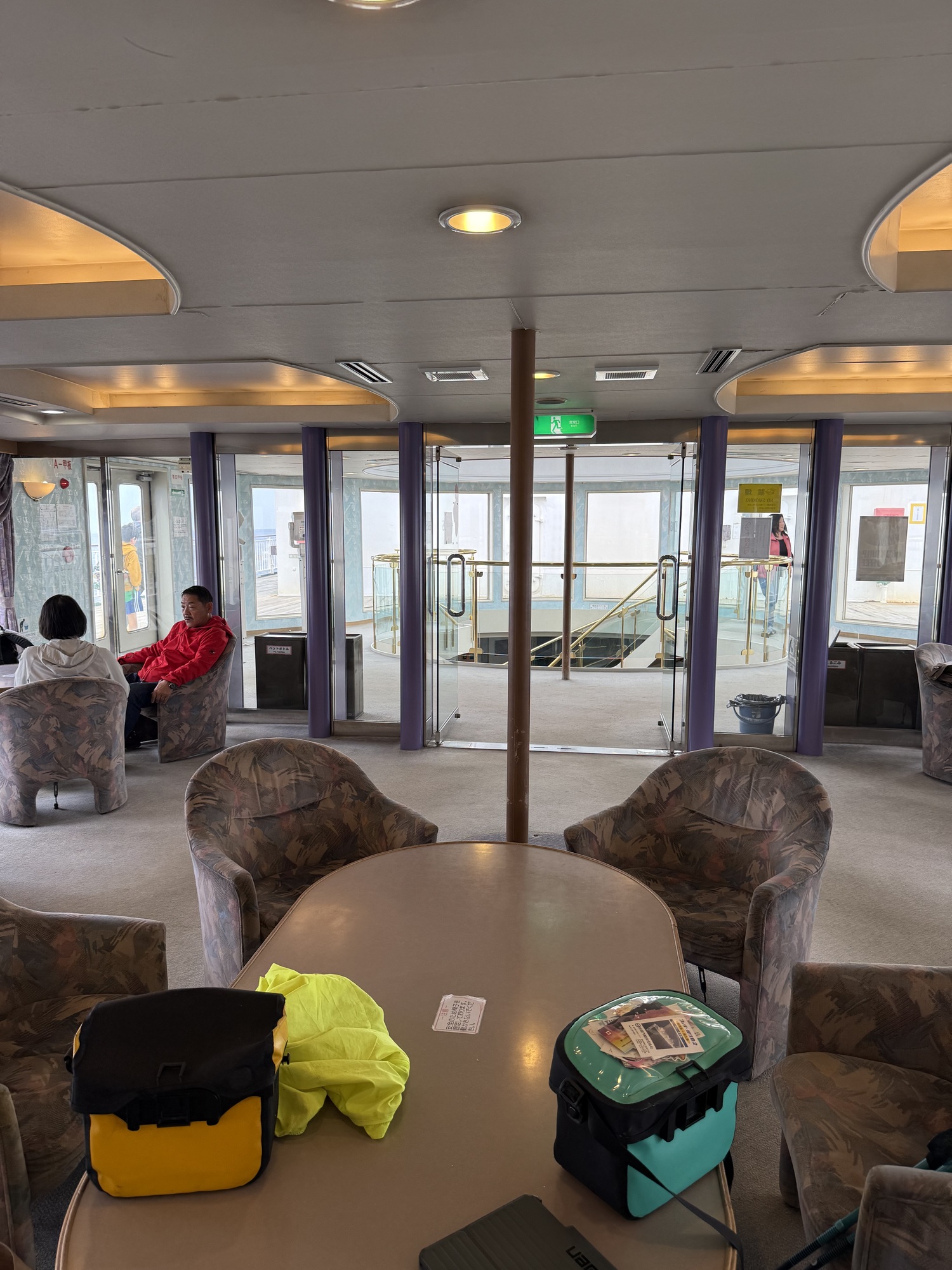 Barry found this lounge on the top (3rd) floor where we could sit on chairs and enjoy a panoramic view. The majority of Japanese passengers seem to be in the tatami mat rooms.