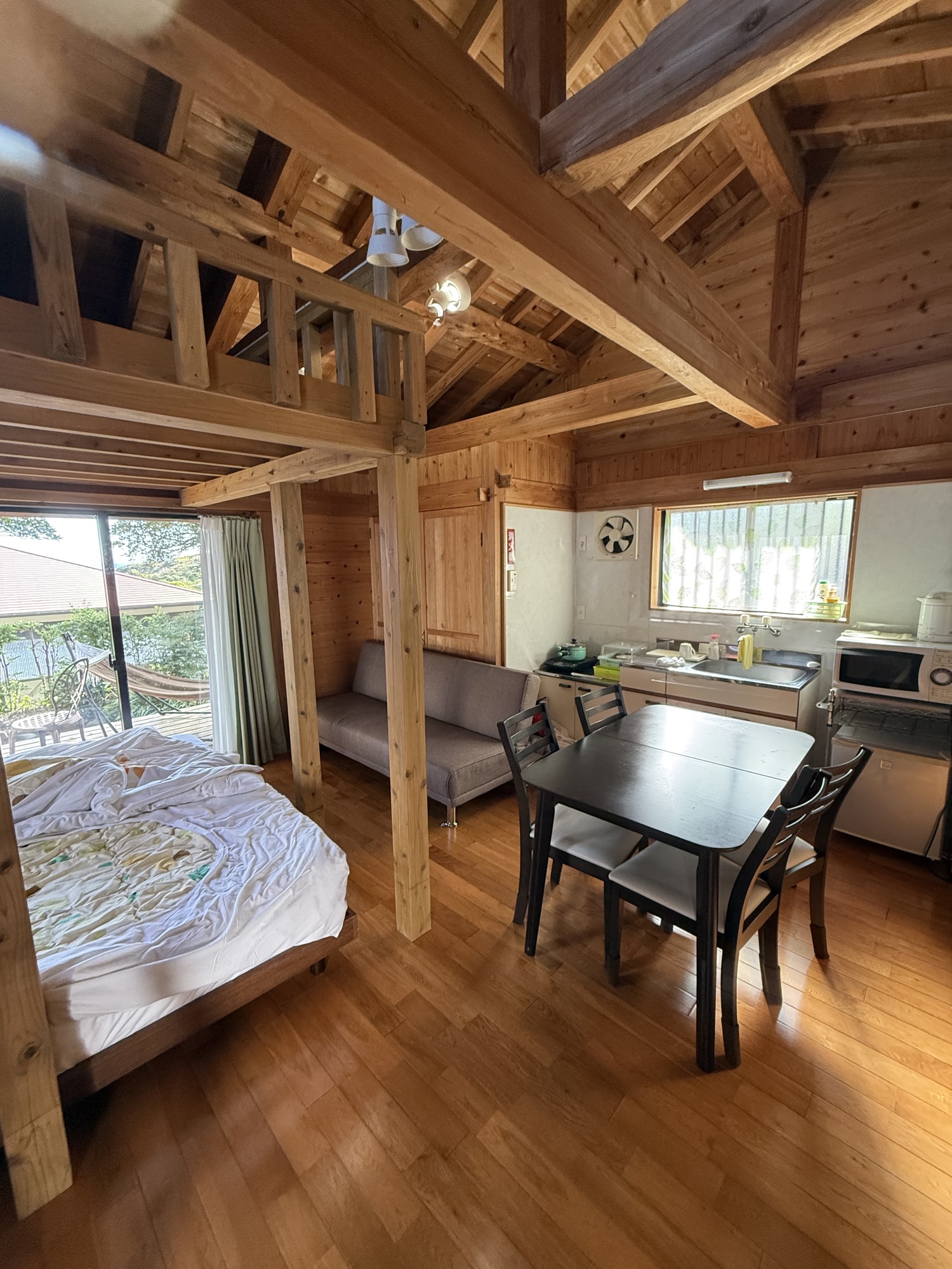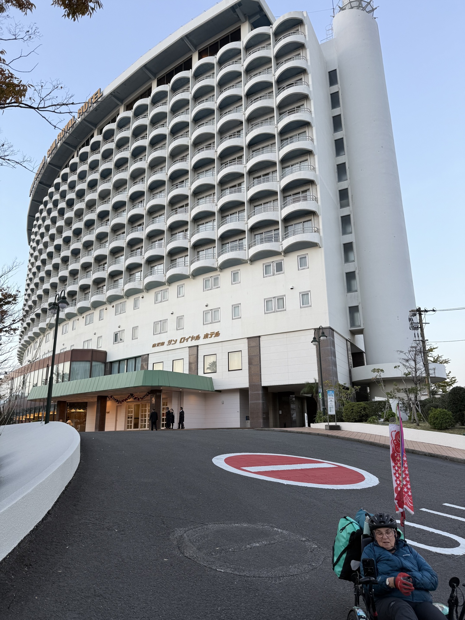 We had a 3 night stay here. Our room was on the 12th floor, just down the hall from the hot spring Onsen, both offer a great view of the volcano on Sakurajima. We continue to be surprised at the affordability of these older hotels….our room was about $80 incl tax.