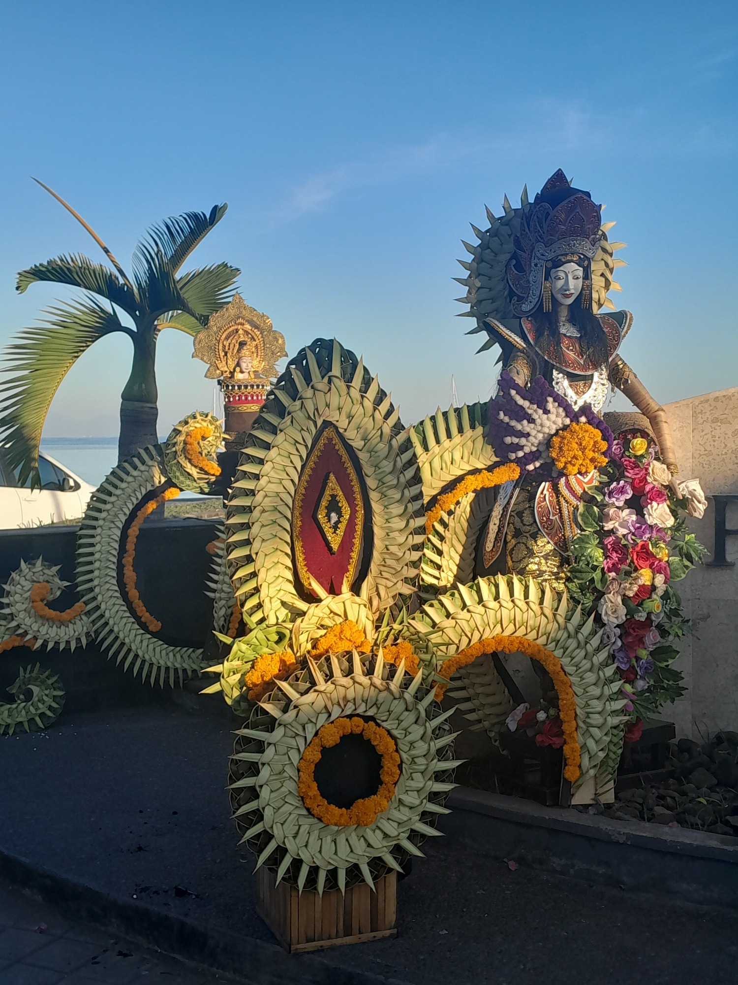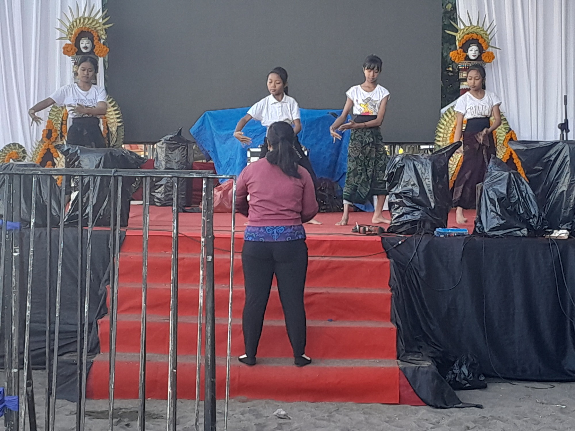 I was too early for breakfast and so, instead, headed for the Gamelan sound and ended up on the beach where a practice was underway. A local, Putu, came up to me and said that the festival is all about garbage. The place was a disgrace with cleaners sweeping the beach. Putu is a filmmaker and was filming the scene. He recorded our discussion and then we went back to his house to meet his family and to have a cup of tea. He made a great comment, something like "you can always meet friends through garbage". A couple of things resonated. He understood the mental challenge of cycling in a filthy environment. He mentioned how bad he found the garbage situation in Sumbawa. I wasn't imagining it!