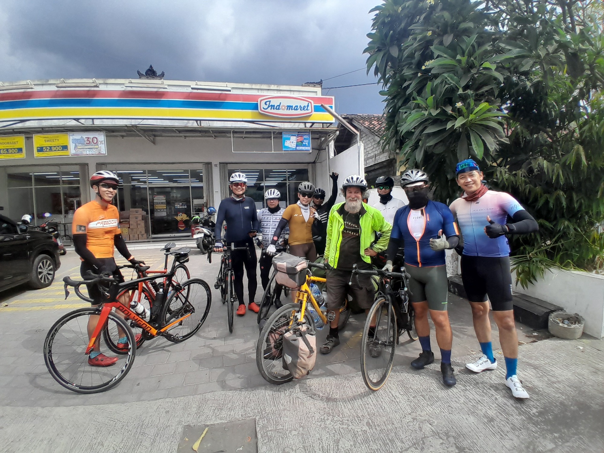 I had hardly got going again when I saw a sign indicating Gilimanuk was 35 km away. I thought that it was 15; my mistake! Right then I met another group of cyclists, all on decent road bikes doing a 360 km tour of Bali. The first question they asked was "how much does your bike weigh"?