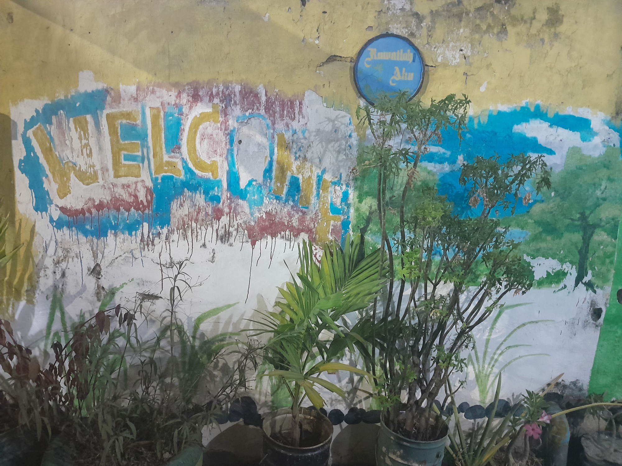 I made my first donation to the Commonwealth Bank in Besuki, so I'll have enough money tonight for a roach-free room. The road this morning has been rough. I've stopped, after 35 km, for breakfast - rice, tofu, tempeh, egg, potato and tea, and coffee.