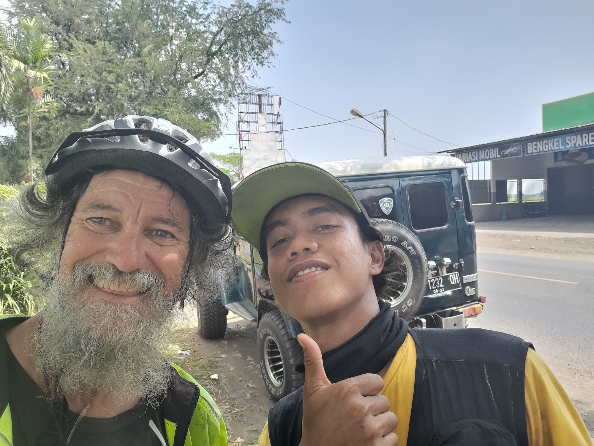 I had seen many bicycles up to this point, all being used as work-horses. I'll get back to that later. But halfway to Pasuruan, I spotted a cycle tourer ahead and soon caught up.