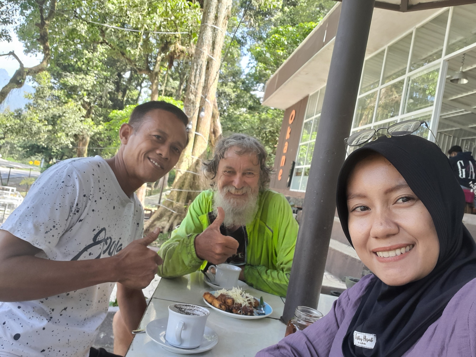 I asked a local to take my photo. That was Ayu, who then invited me to join her and partner, Jiwo, for coffee. Ayu also ordered a rather interesting snack, a combination of ingredients I can't imagine in Australia.