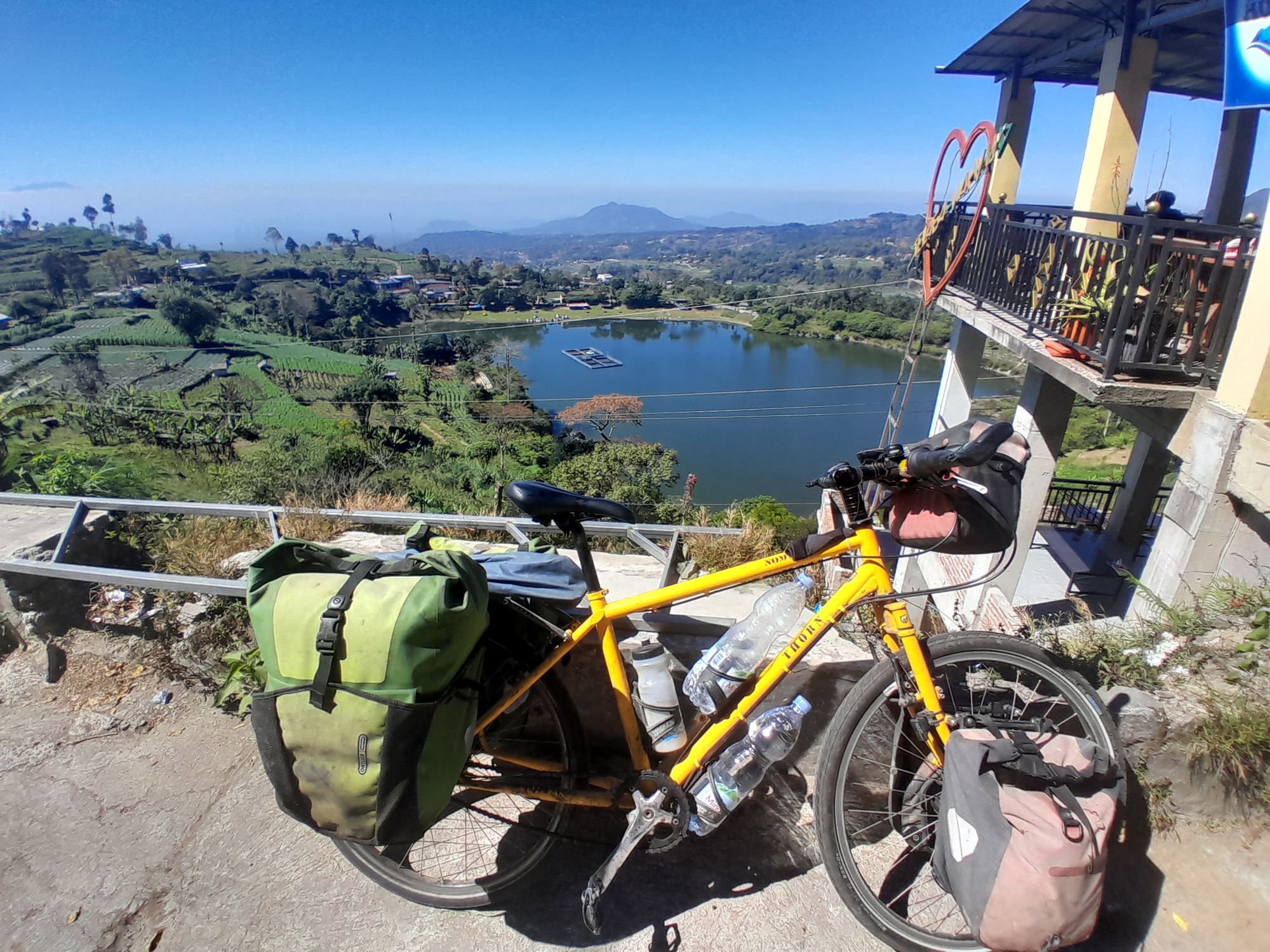 Well, I opted to get to Surakarta the hard way and it made me suffer. There was roughly 1600 m of climbing in 20 km, an average gradient of 8%. Unfortunately, there were a few flattish bits! I can't decide if I rode it well; I plodded away and got to the top, so I guess that the answer is "yes". It was an absolute beast. And before you start on Black Mountain or other equivalents, don't forget to toss in a handful or two of heat and humidity. I was drenched from start to finish. As usual, I wore my fluro top that weighs nothing when dry. I removed it at the top; it was heavy, dripping.