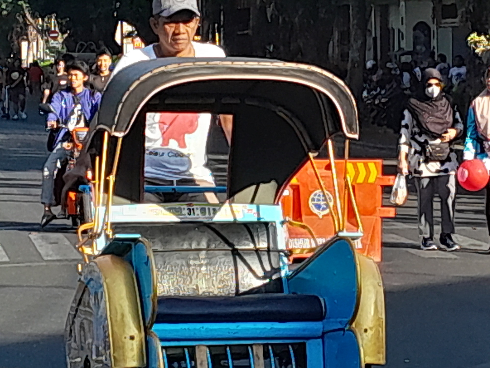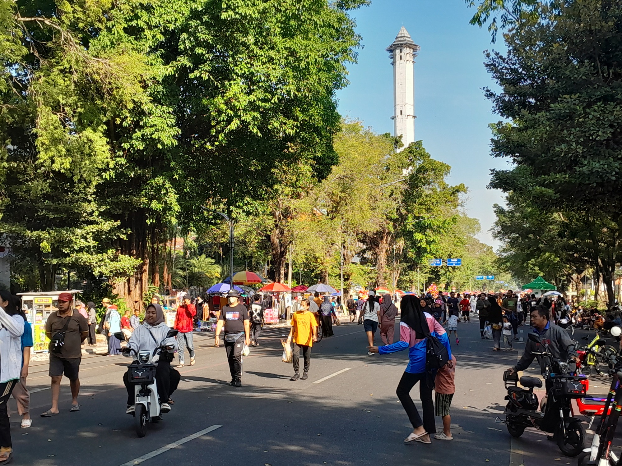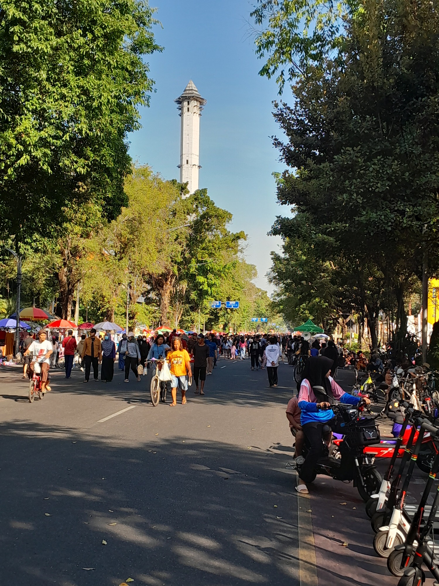 What a terrific surprise! People of all ages enjoying a stroll or a bicycle ride or just a little quiet, albeit for just a few hours. Then you put your bike away and count down the time until Sunday arrives again. I had quite a smile when I weaved through the crowd, turned left, and then right heading to Yogyakarta.