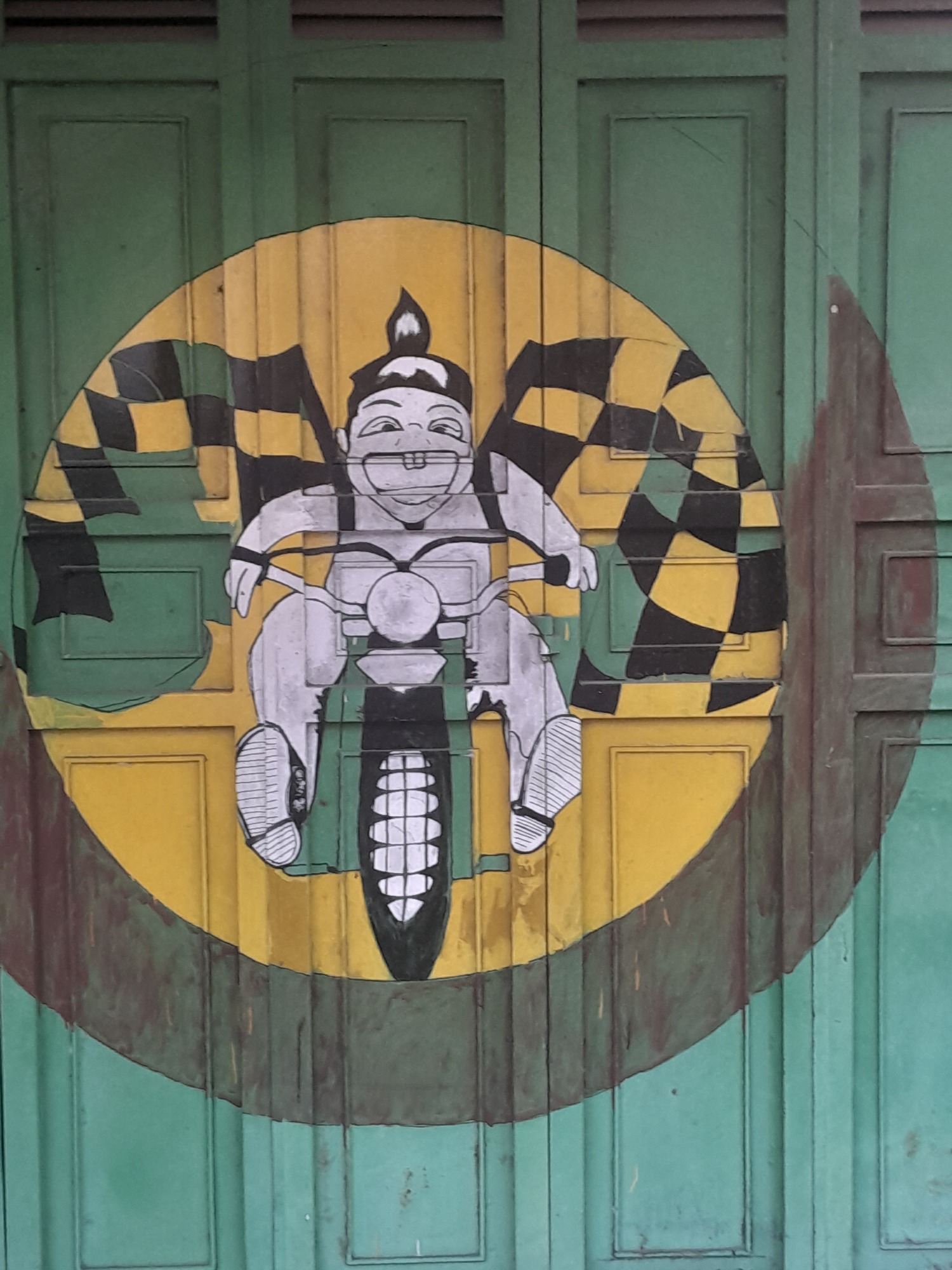 Some of my difficulties relate to food. I want to cycle with a full gut. I had a poor meal last night. I wanted hot food but that wasn't available nearby. Instead, I had the cold rice, cold tofu, cold egg, cold vegetable option, that I've been eating most days but try to avoid at dinner. I want food to say hello to smoking oil at the bottom of a wok! Breakfast was problematic too. Hotel Karaoke didn't have karaoke so it's not surprising that it didn't offer breakfast. I ate a stack of biscuits, a few bananas and a couple of mandarins. That's a snack, not breakfast. I set off with the fuel tank hovering around empty. This is not good on a Sunday, when many warungs tend to be closed of a morning.