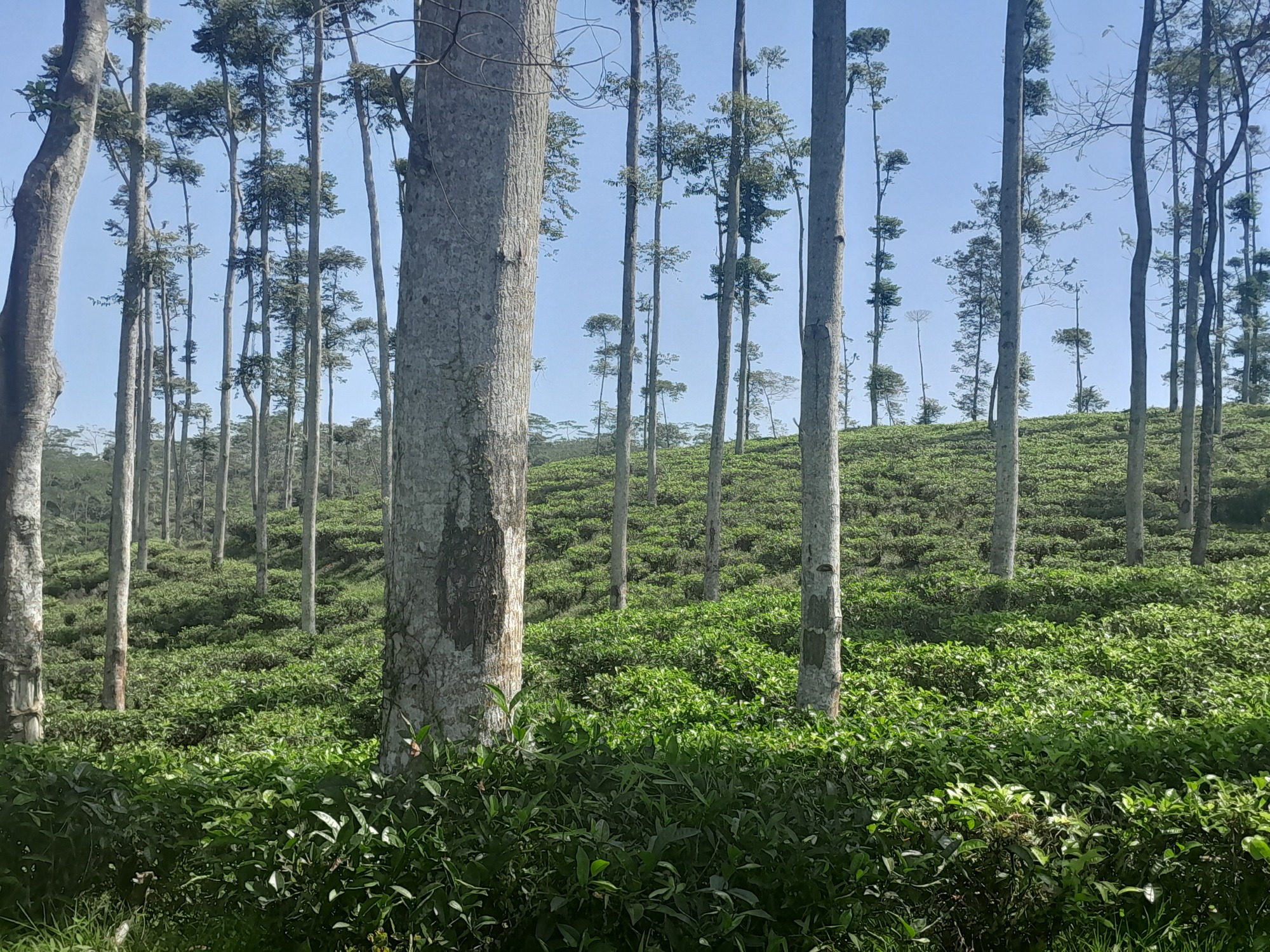 I cycled past a substantial tor and among more tea before a huge descent. Due to the patchwork nature of the road and the increasing traffic, it wasn't much fun. From the bottom it was 15 km to Cianjur.