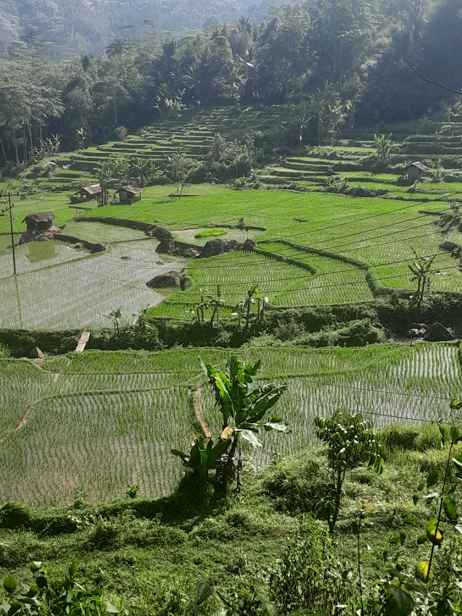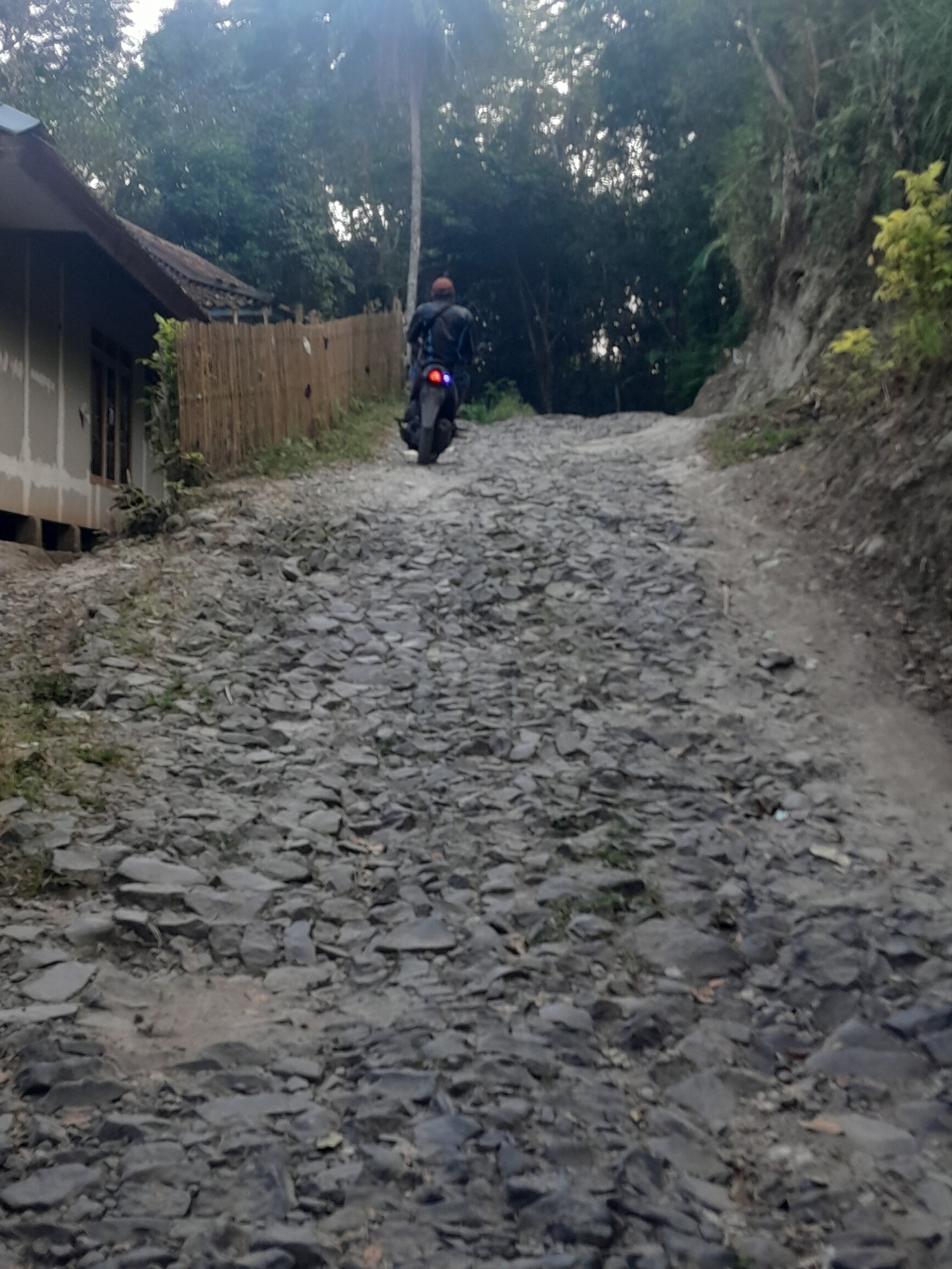 Anyway, I got my coffee, ate bread, bananas and papaya for breakfast and was away by 7, determined to have a big day. Three hours later, I was in the warung where I ate last night, having another nasi goreng and generally regrouping. Once again, Komoot had put me on a goat track. Three people had said the track goes to Bogor - it probably does. The fourth said "extreme" and told me to go back.
