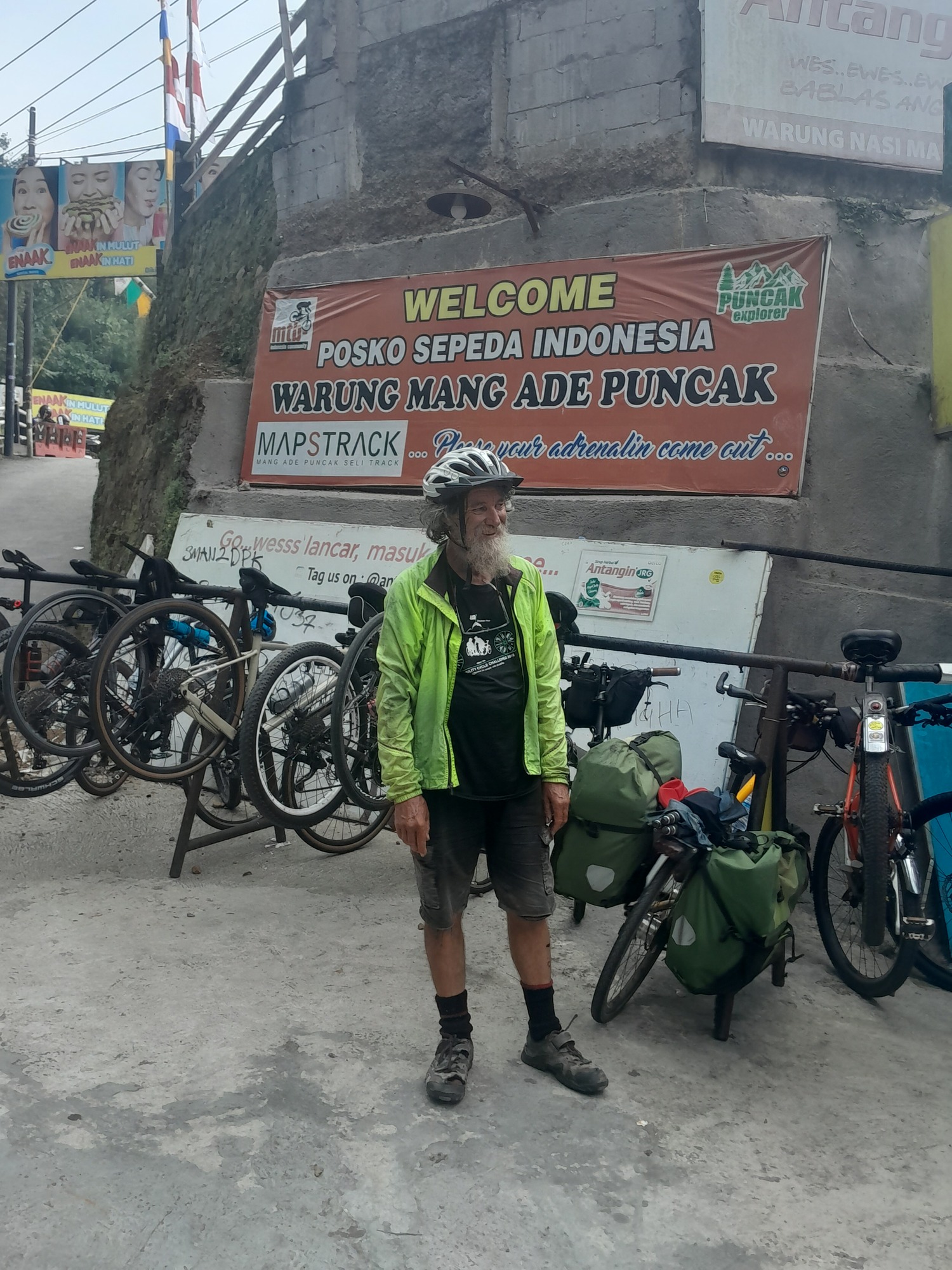 It was after 9 that I left but I reminded myself that I had just 65 km to Bogor and then more to get to Daisy's. There was a little catch - a 30 km climb gaining 1200 m to start. Climbs are always much harder in traffic, especially when there is no shoulder and a drop from the tarmac. This road provided both for much of the ride from Cianjur to Bogor. And before you all do that calculation- 4% average gradient, I'll let you know that there were a few flattish bits and even a descent. Also, it's the tropics so use the 1.8743 correction factor. I was drenched.