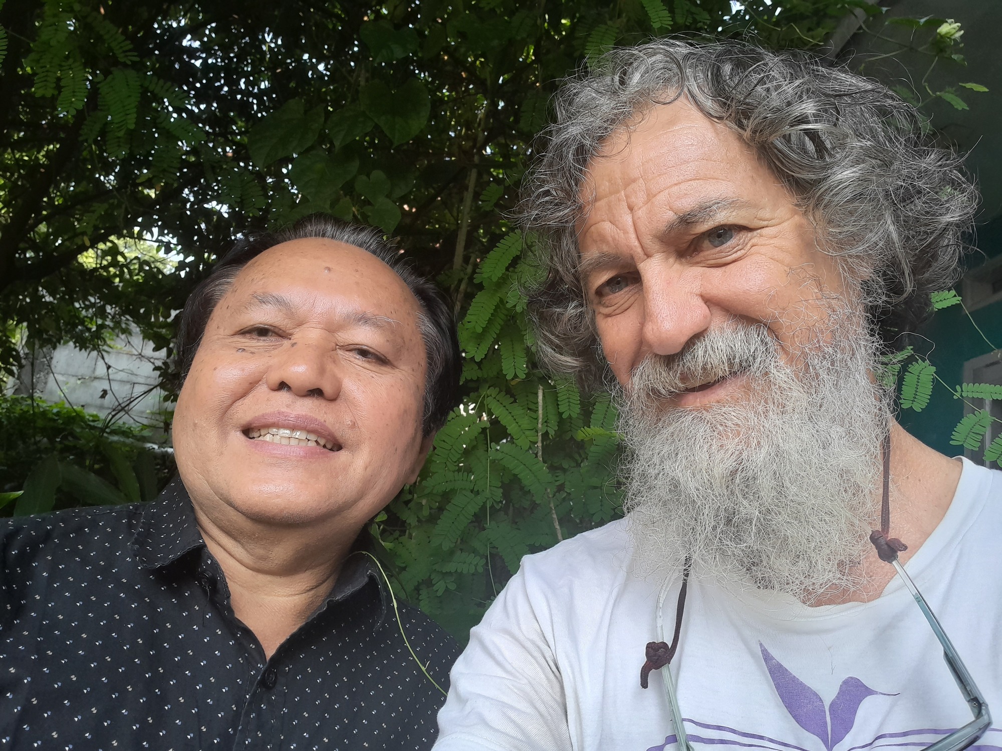 A couple of days ago, when I arrived in Bogor, I mentioned to Daisy that 40 years ago I was friends with a fellow student from Bogor. The last time I saw Arnold was when I stayed with him and Erly in the late 80s. We looked up Arnold Sinurat and had no trouble finding him. Daisy sent him a message, at a speed that would surprise a hotel roach. It seemed that we all had limited time so Arnold came to Daisy's this morning. We chatted over a drink, I tossed a few items in a pannier and then Arnold drove us to the station.