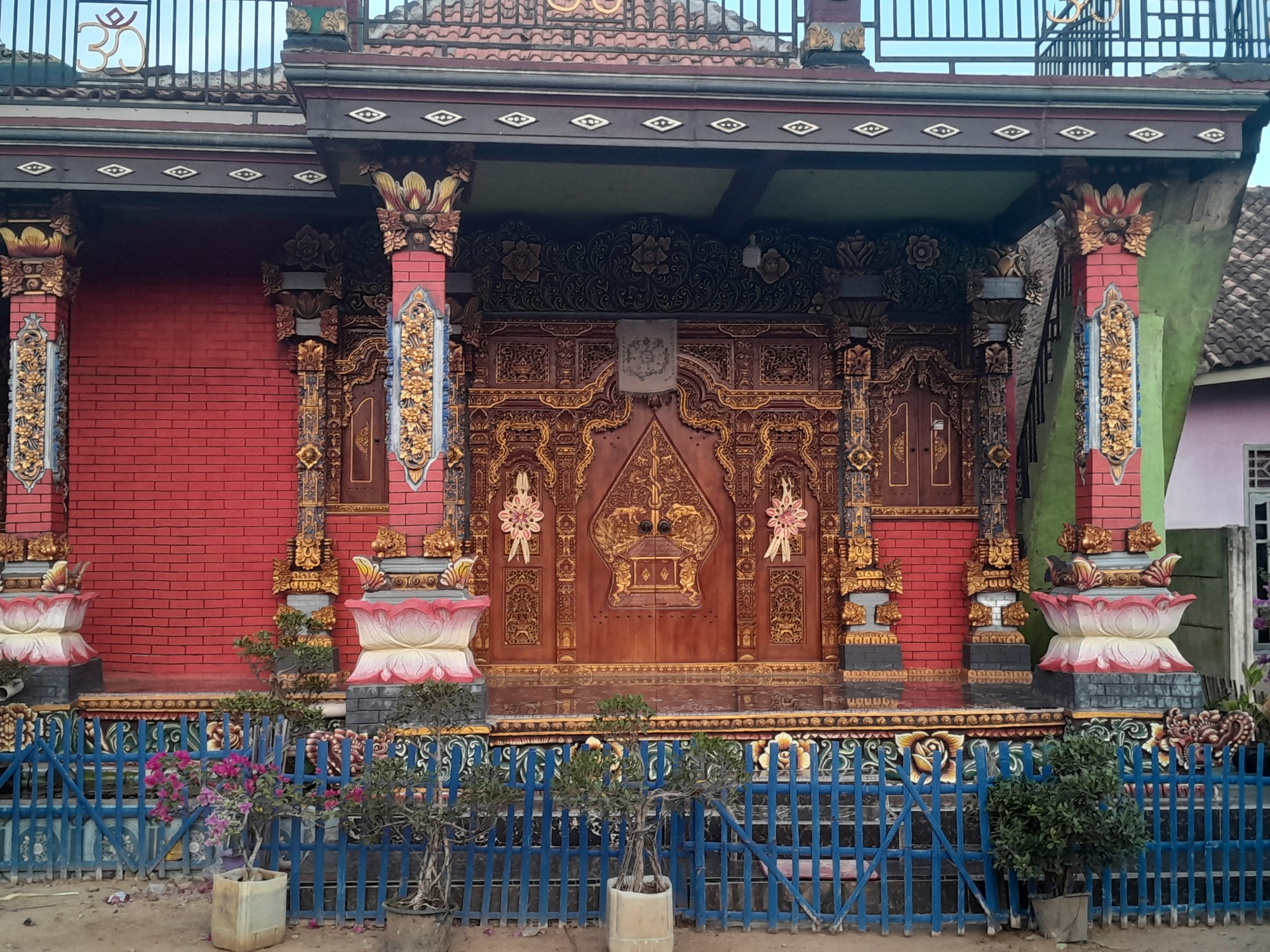 As I returned to the main road, I cycled through a village with interesting houses, often with temples.