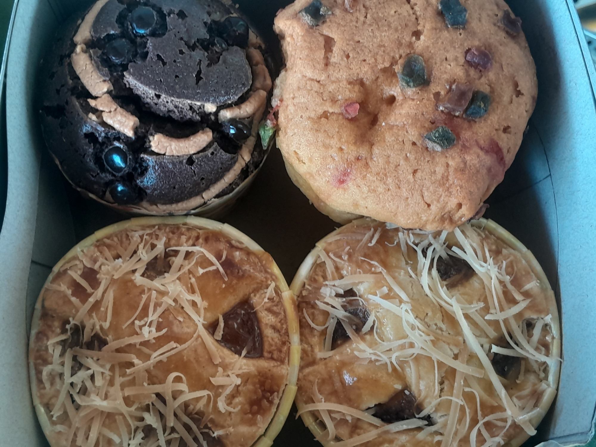 I had done just 15 km when I noticed a bakery - uncommon in Indonesia. What's more, this one was advertising "roti durian". I wandered in and the first thing I saw were small muffin-like cakes. Now, a simple way for a touring cyclist to judge the quality of a snack is weight. These cakes were heavy. I grabbed a few and then enquired about roti durian, of which I knew nothing. It's simple; the plain loaf is cut in half and spread with a dose of durian puree stored in the fridge. I splurged! My purchase was 50,000 rp.