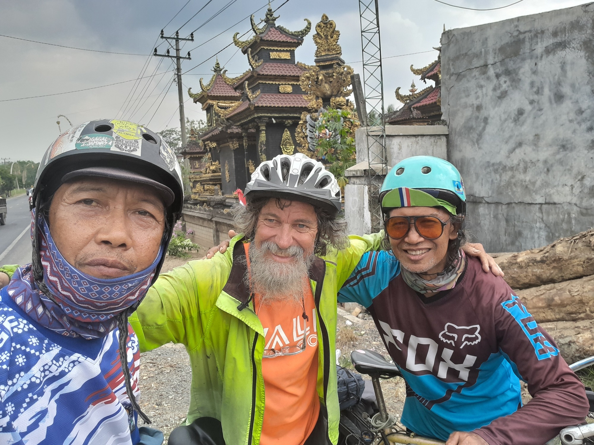 A few minutes later, a pair of tourers appeared coming towards me. We were all excited. Selamet and Mr Heru are doing a round-trip from their hometown, Lampung City, to Palembang. They're both riding Federal bicycles, which are made in Indonesia. I didn't look too closely, but at a glance they looked good.