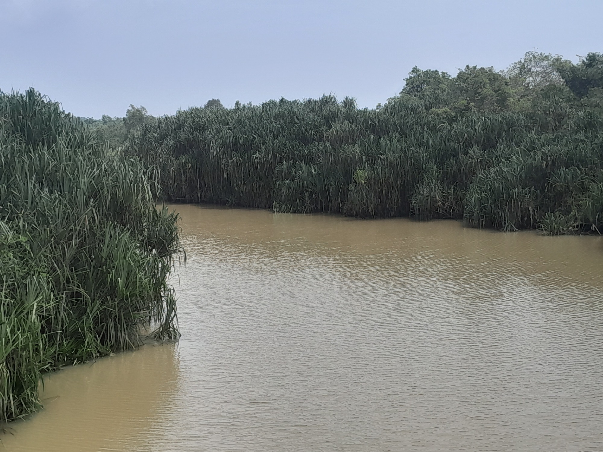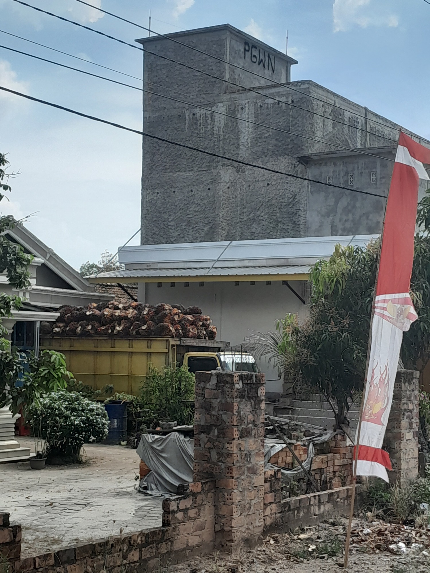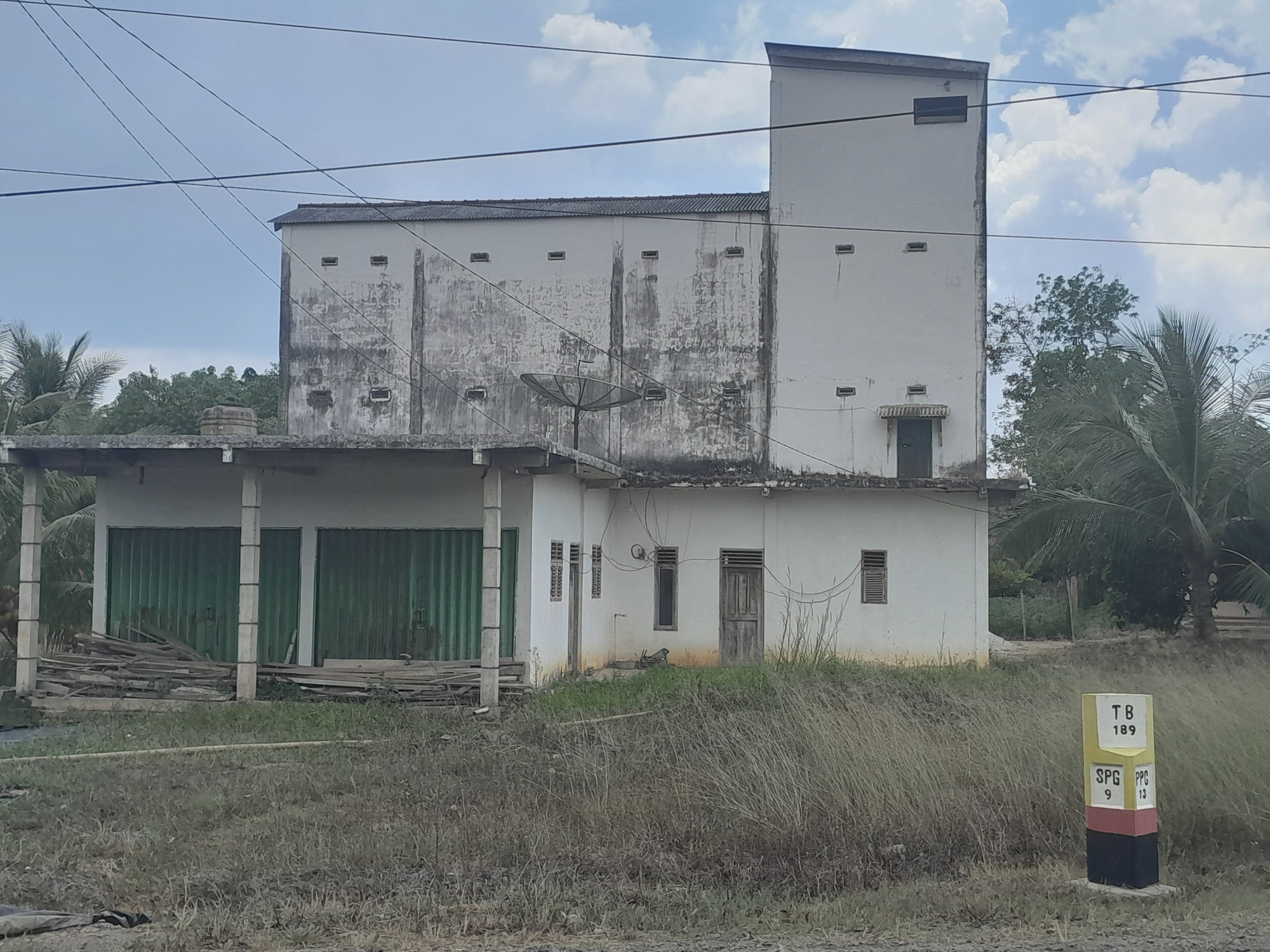 After 40 km, the road changed completely; it became quiet for about 50 km and the surface improved. The reason was obvious, if you looked: beyond the facade of roadside vegetation, lay vast plantations of rubber and coffee. Occasionally, a road led to a processing plant. Villages were few. Every so often, I saw a motorcycle loaded with palm fruits but usually it was trucks.