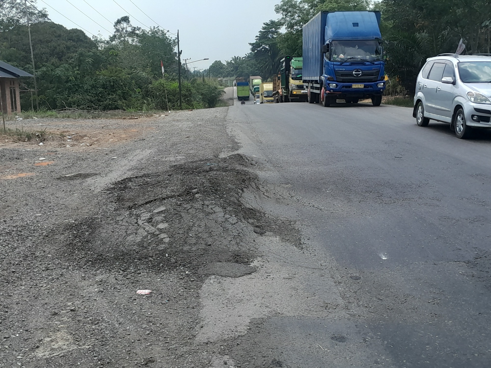 So, what were the conditions like today? A simple answer is remarkably like yesterday's in terms of the weather and the undulations, most of which requires first gear. There were probably more trucks and this, in itself, says a lot. A lot of trucks means a lot of people and thus a roadside strewn with garbage. The trucks in Sumatra are dirty and blow plumes of black smoke, especially when creeping up steep pinches. I got in the habit of holding my breath for 30 seconds to avoid the worst of it. A lot of heavily loaded trucks also chew up the road. It was a patchwork that makes me wonder how far I would have gone had I rolled.