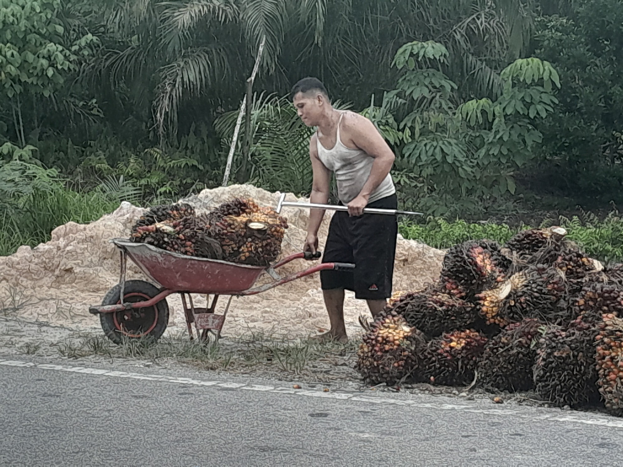 I kept pushing as plantation workers pushed also. At some point, like yesterday, a vehicle came alongside and a woman offered me money. I pointed to my pocket.