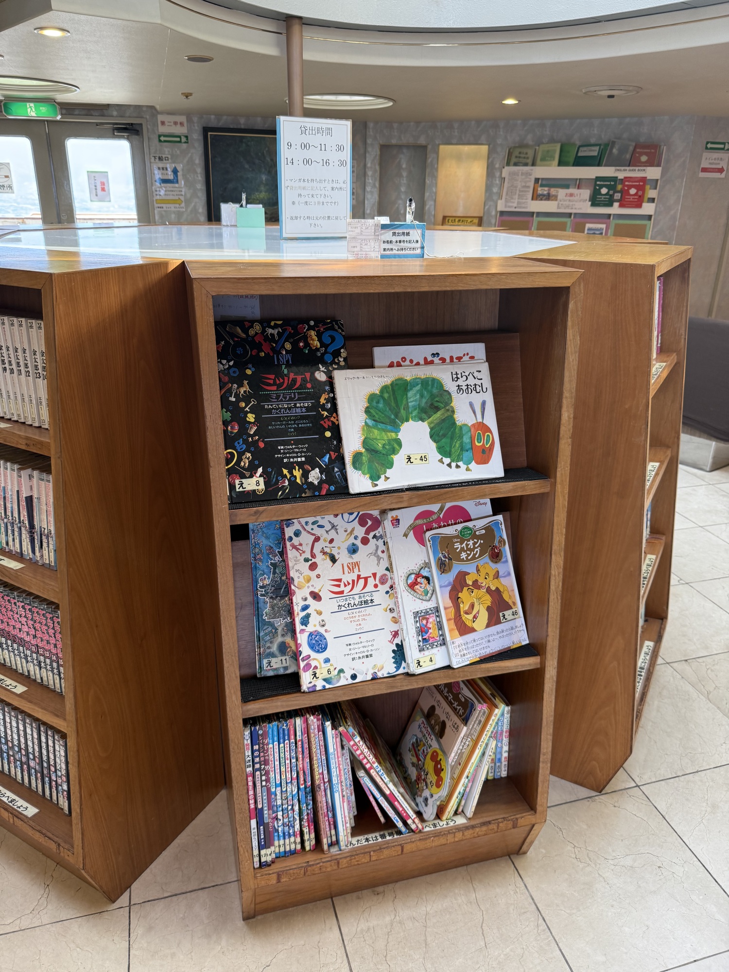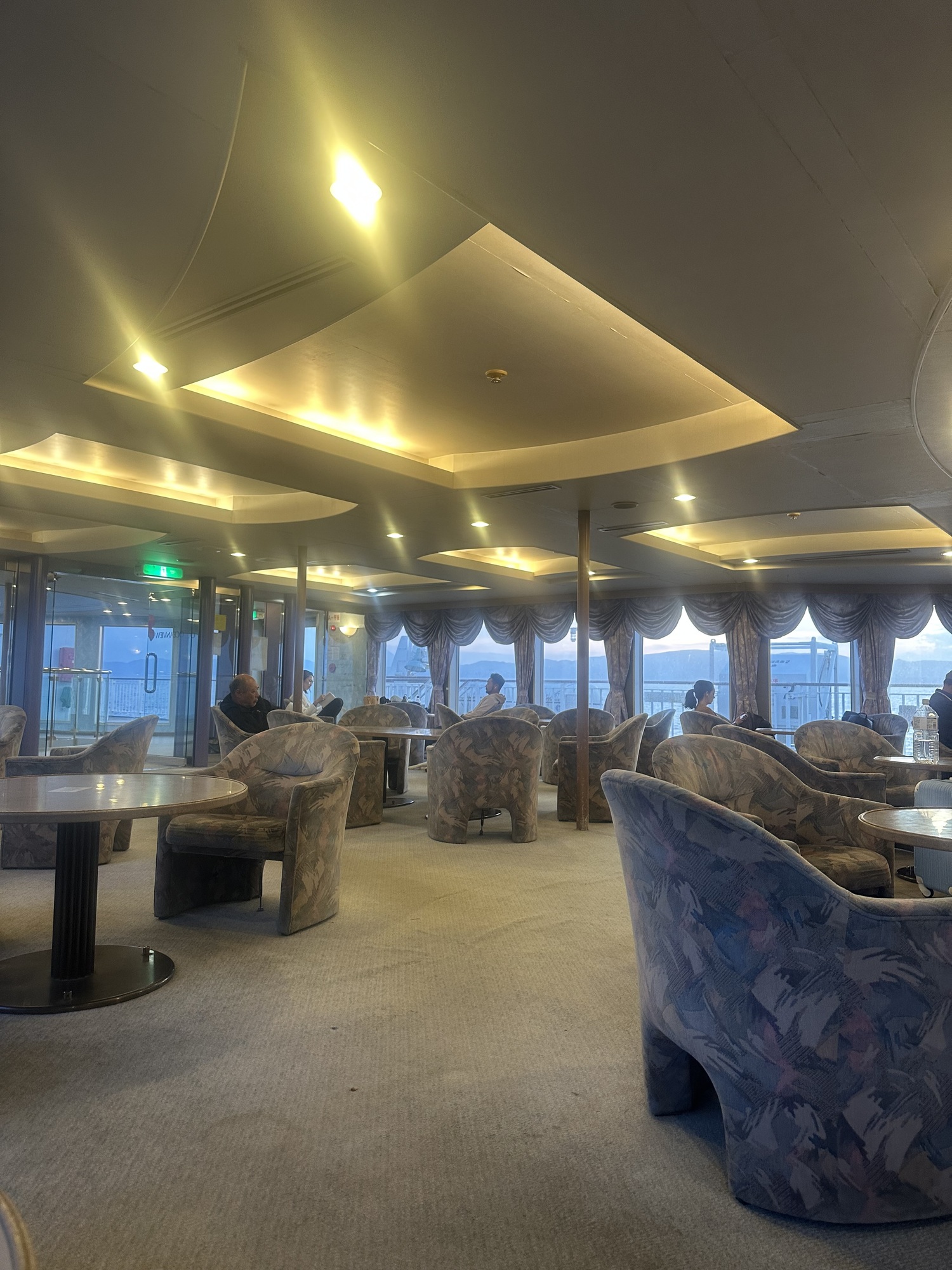 Much of the space on the ferry is Japanese style with tatami mats and no chairs. This lounge worked better for us, plus we had windows to enjoy the view.