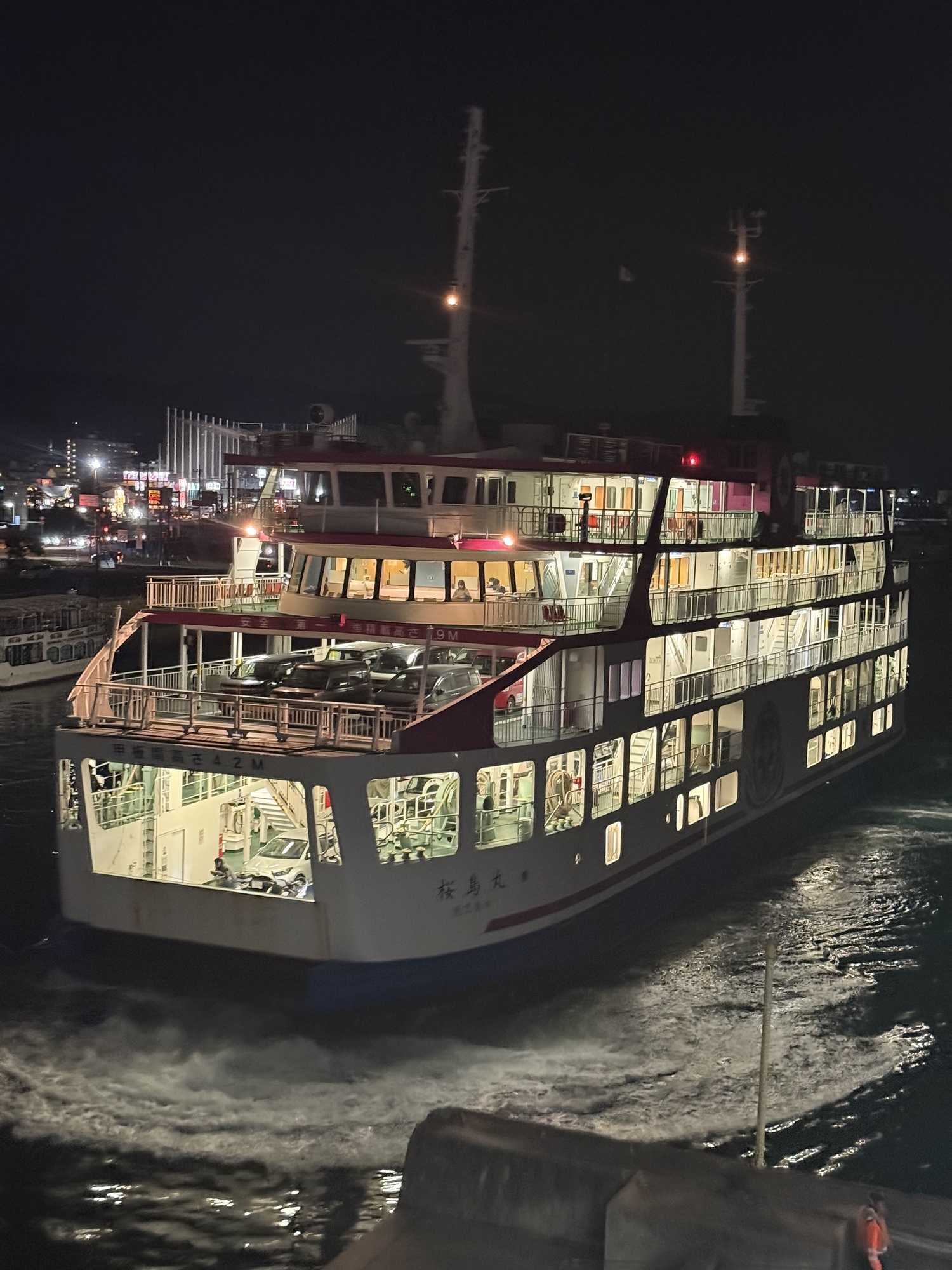 We got off the ferry in the dark and somehow got separated. Kagoshima has a number of ferry terminals along its coast and somehow we chose the wrong one.