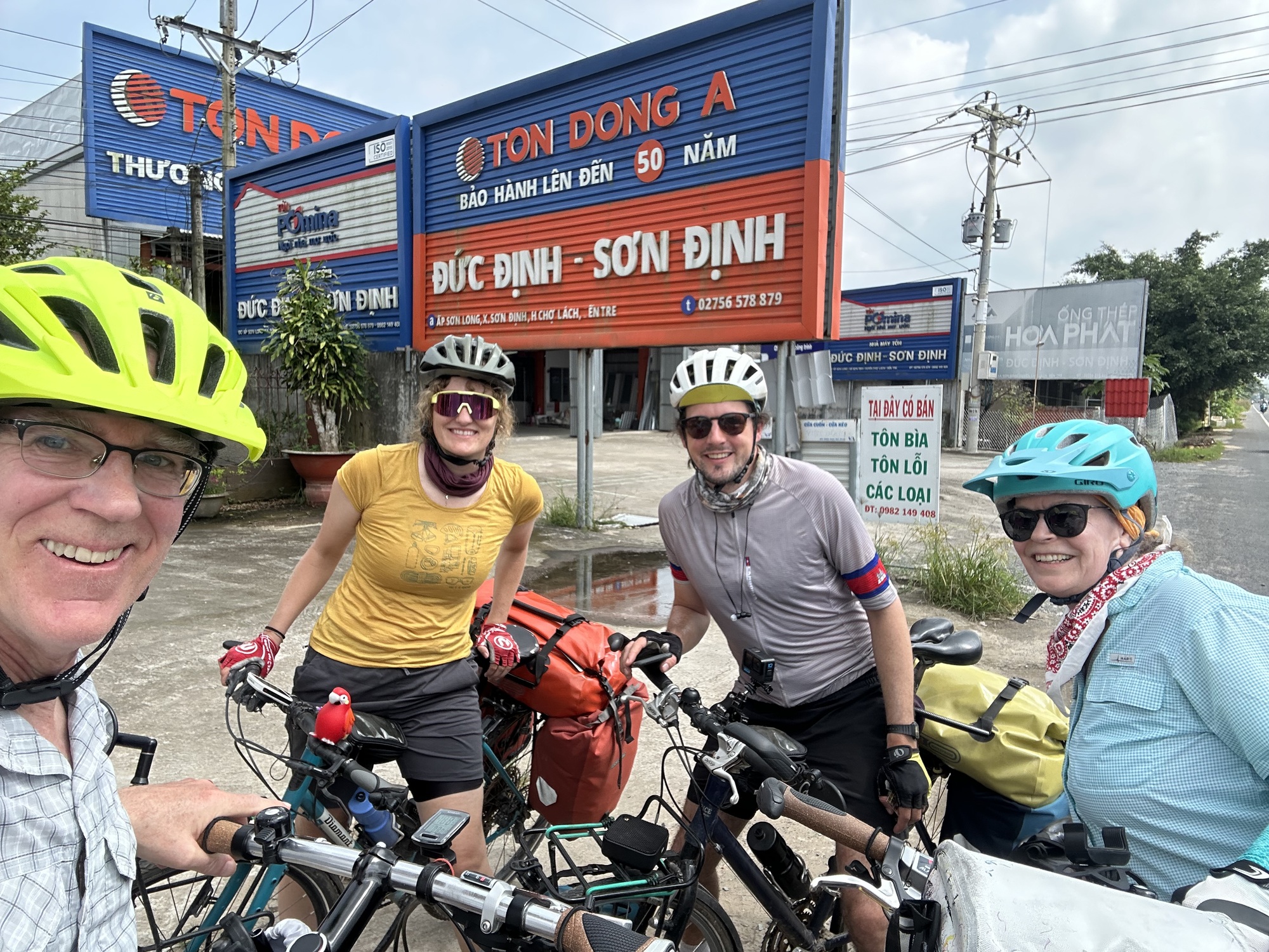 The main reason we splurged on the room was because it was a super hot day and we didn't ever think we would make it all the way to Vinh Long -33 miles. The first half of the day I felt as if I was hauling hundreds of pounds of rocks, or, that my tires were flat, or, that my brakes were on. Something was wrong. I didn't want to think that I could actually be out of shape! Me!! No, never!! Actually when the surface of the road became smooth everything changed. I had forgotten how the surface can drasticallyaffect travel by bike. It had been so rough that I was thinking we were back in Myanmar but then it was smooth as Thailand's roads and my mental state improved considerably. And, after many stops for various types of liquids we made it to Vinh Long.