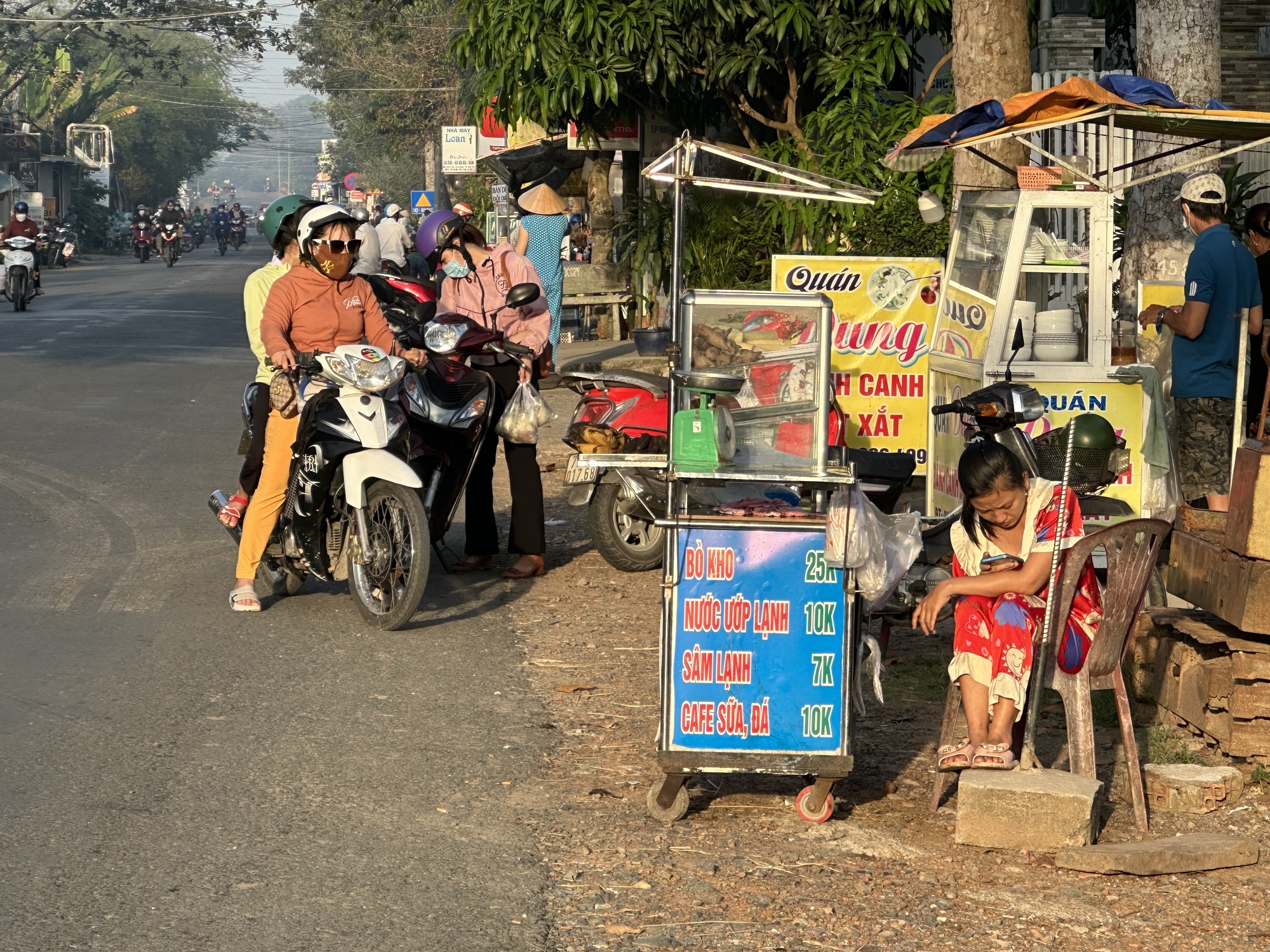 The sunrise through our gorgeous, albeit filthy, windows of room 214 at the Hung Vuong Hotel was spectacular. The corner windows of the room make it a special room. We didn't have a papaya to make our own breakfast because we wanted to hit the road early and not dilly dally with a papaya, muesli and milk. Therefore we were on the road at precisely 6AM, along with thousands of the locals.