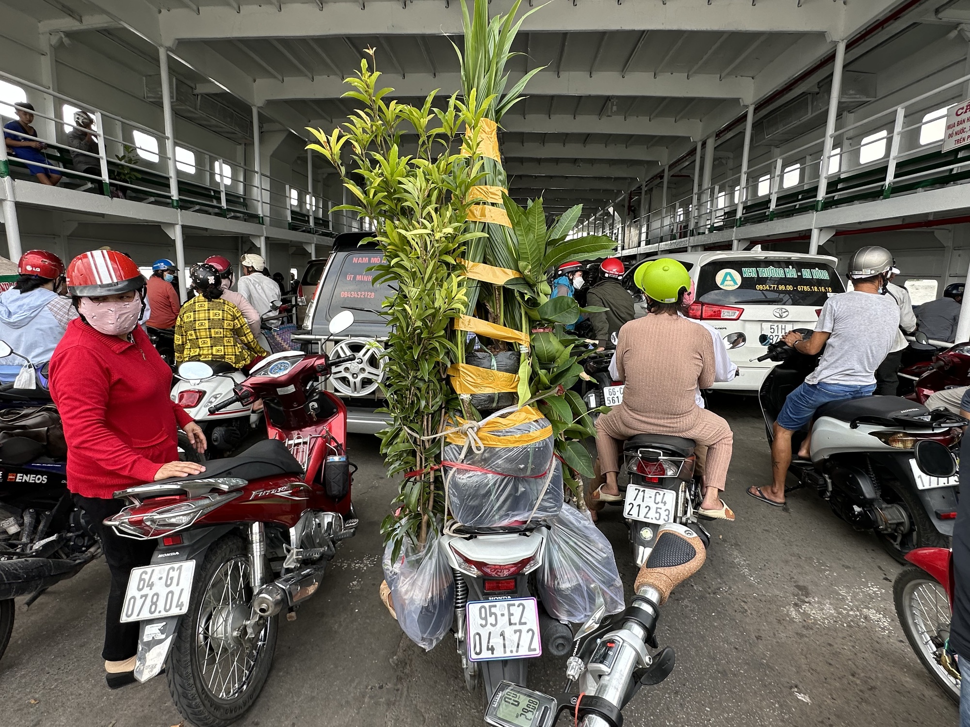 Then there was the second ferry which was the biggest ferry across the widest channel yet. Strangely, it was also the cheapest ferry. All the ferries have been dirt cheap @ 12 cents per person but this big one was only 8 cents. There are at least five main channels of the Mekong in the delta and this was a big one.
