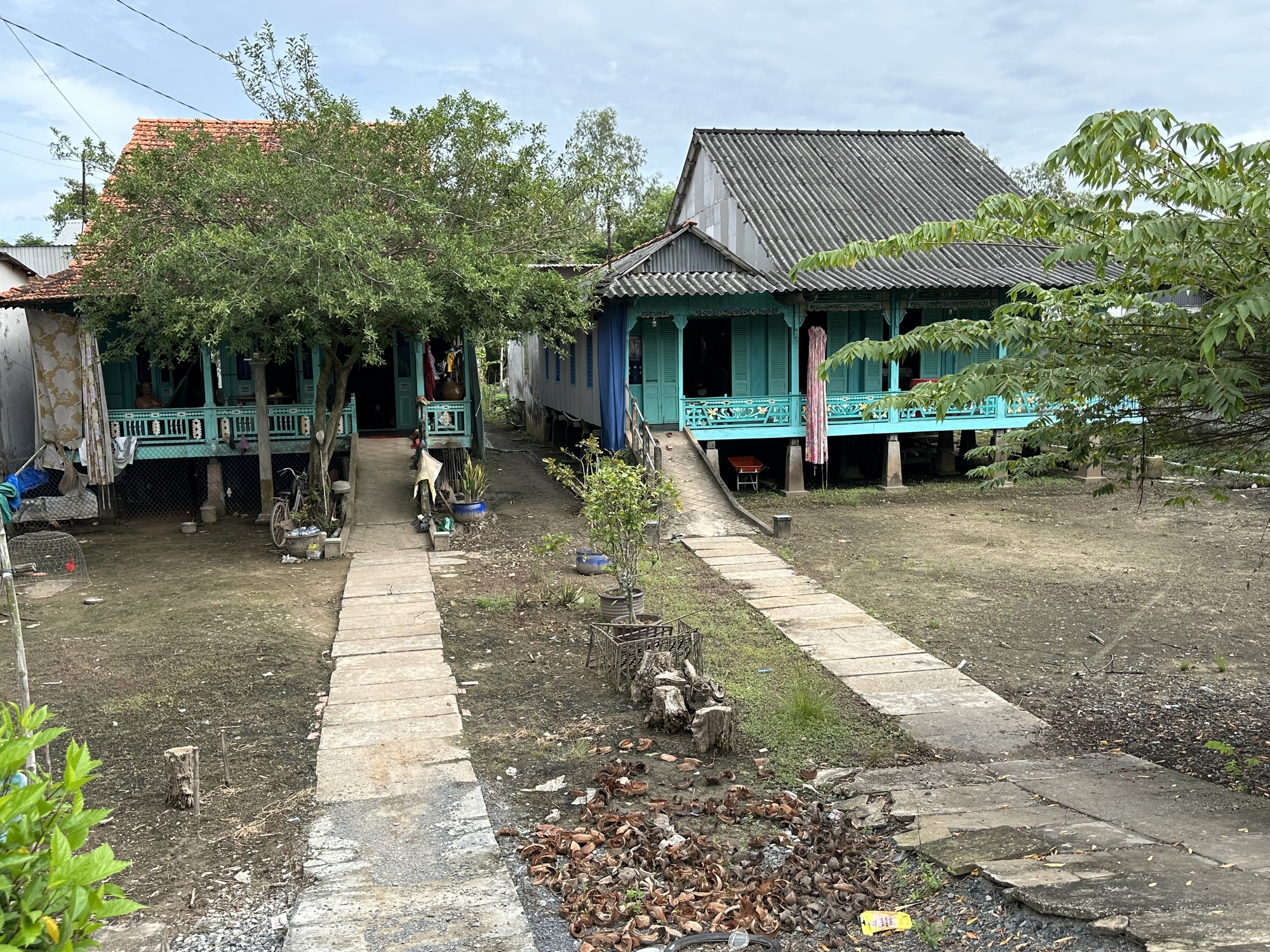 But, wait, we aren't gone from Vietnam yet. Today we rode alongside one of the arms of the Mekong, over a dozen canal bridges and past countless groups of men sitting around at tables drinking tea or coffee. Saturday seems to be the day for socializing after their busy work week. There are plenty of others who are still working on Saturdays, however, and the roads were again busy and downright dangerous since the one we are on is rather narrow. We've seen many, (too many) outlines of bodies, motorbikes and bicycles sprayed on the pavement with white spray paint. It's sobering. I think I even saw an outline of a wheelchair!