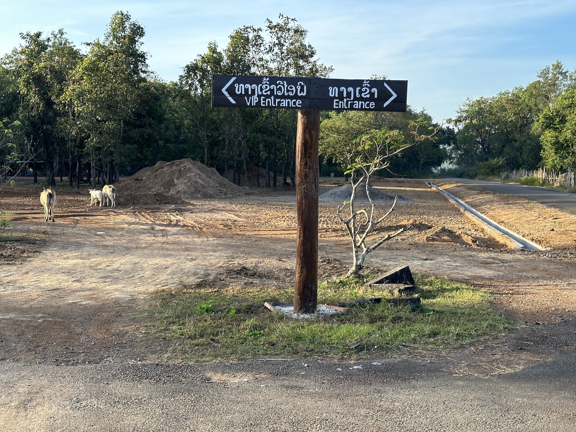 Since we were so early, the ticket booth didn't have a motorbike near it which meant no one was inside and we were free to breeze past. I don't know what it is (besides being cheap, thrifty, son of parents living the Great Depression, etc.) why it feels so good to avoid the fee. I think waterfalls should be free. Sure, the country of Laos owns it but as most fees go in this totalitarian, corrupt country, some of those fees are going to go into the wrong pockets. That's what I object to.