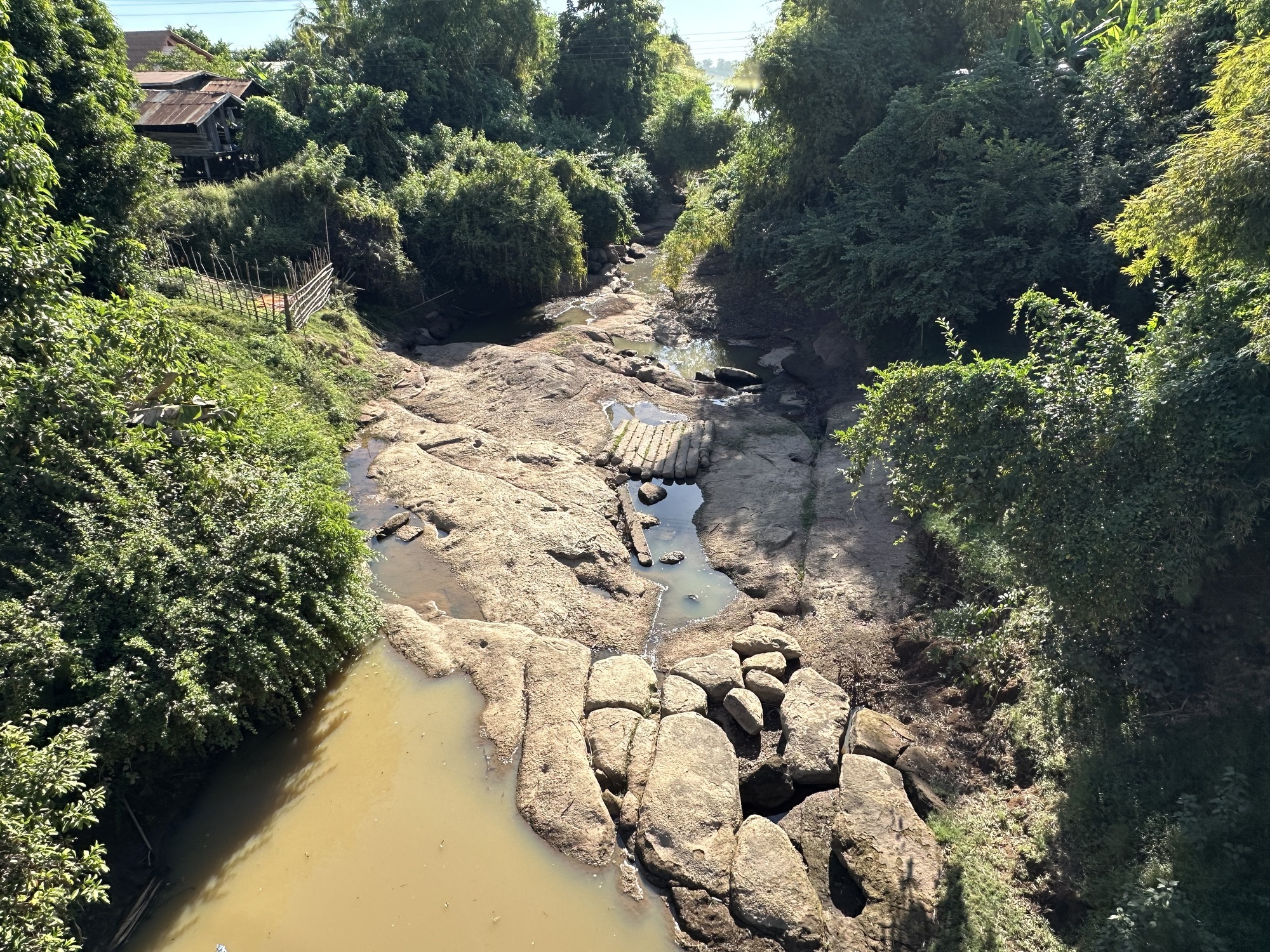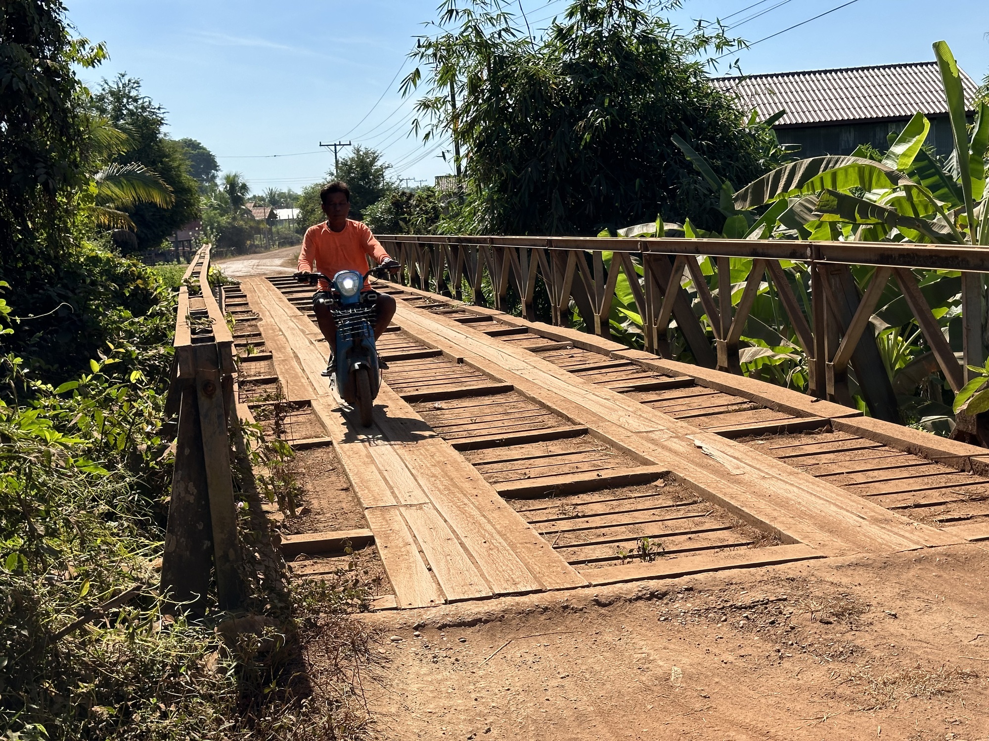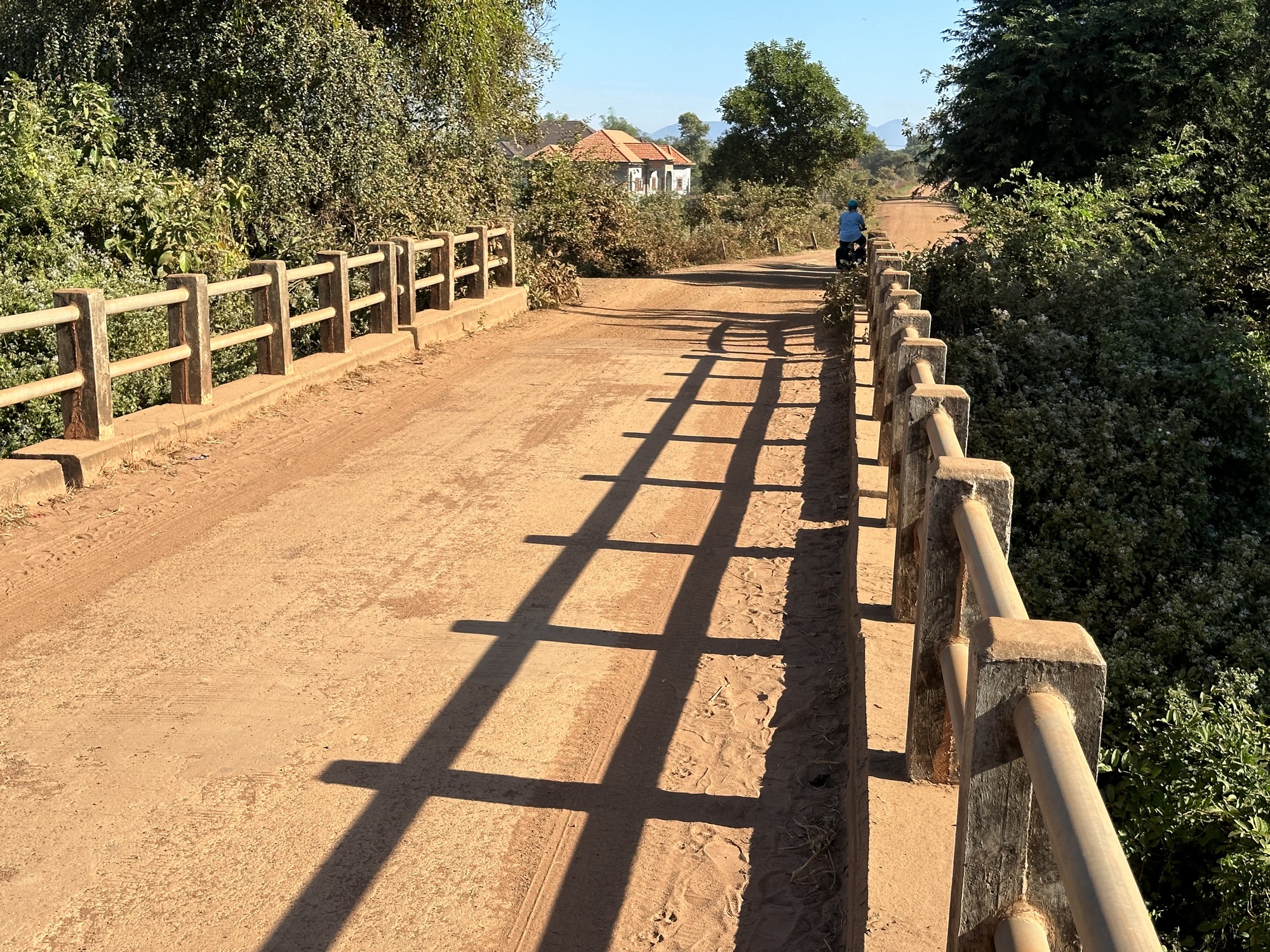 There is a road of sorts and we tooled down it. Some places were really rough, some were okay, there were clattery bridges and people calling out from under their houses as we went by.