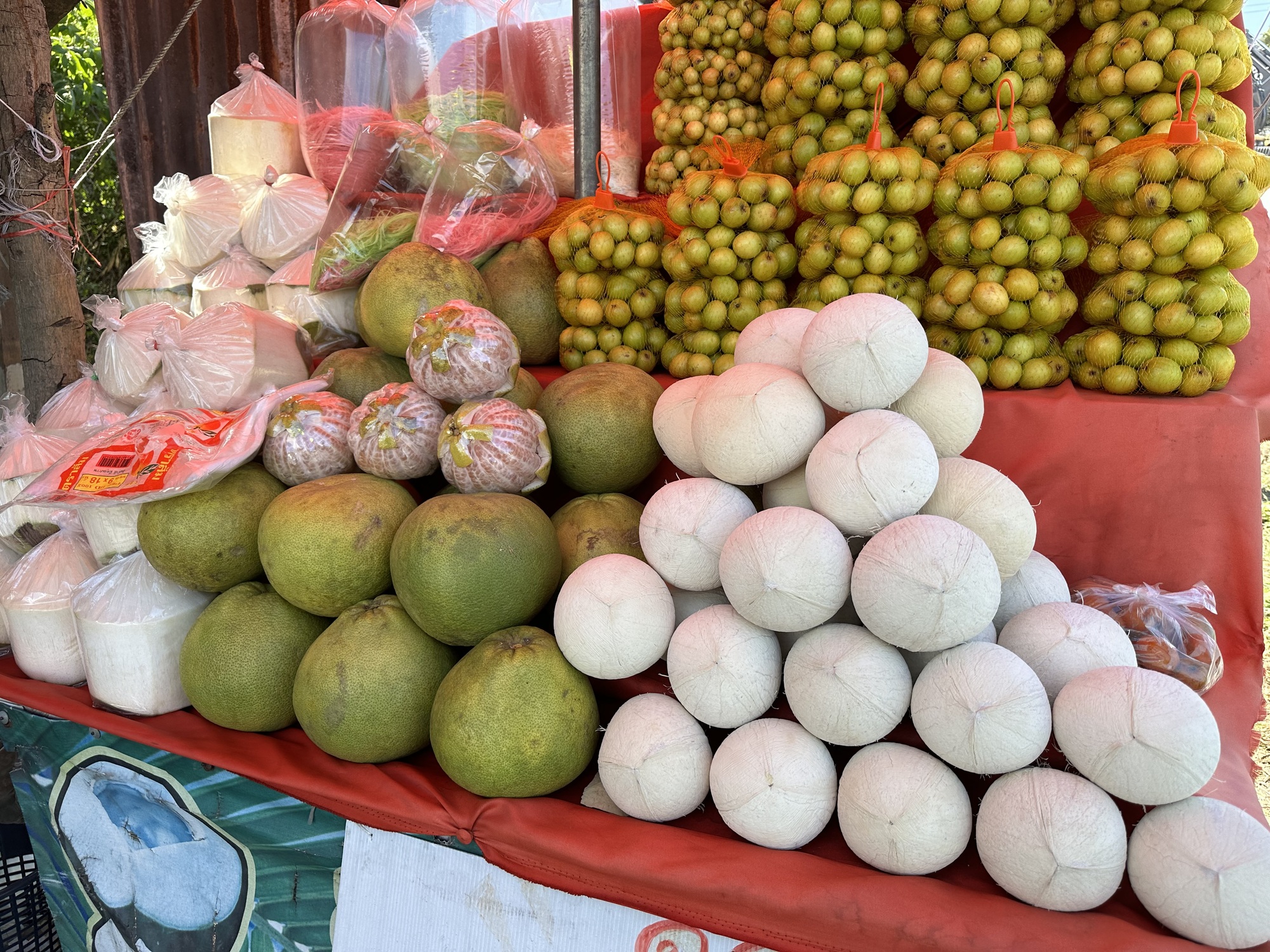 We ended up with a soup full of strange animal bits and pieces and a larb, both adequately cooked, both tasty. We split a Chang beer over ice, saluted yet another very strange Christmas dinner, and left 80% of the soup ingredients in the bowl, hoping we weren’t insulting them by doing that. Some adventurers will eat tendon, yum yum. Not these ones.