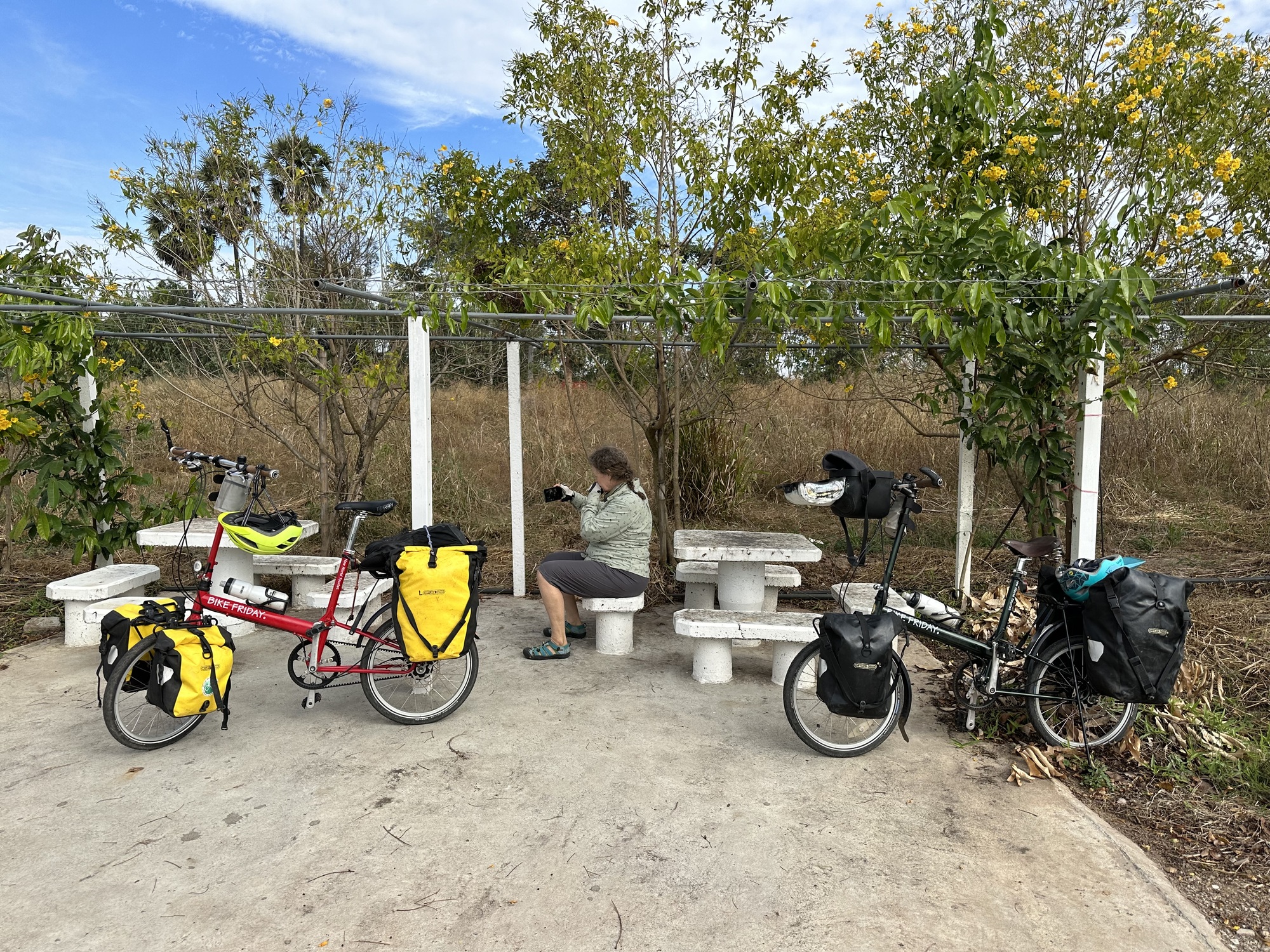 We pulled over a few times. For Bruce to photograph something, to FaceTime my family gathered for Christmas Eve (hurray Thai SIM card!!), to eat a protein bar and scarf some electrolyte water. But it was cool, windy, and not bad cycling. By the time we got to the outskirts of Ubon we were ready to stop.