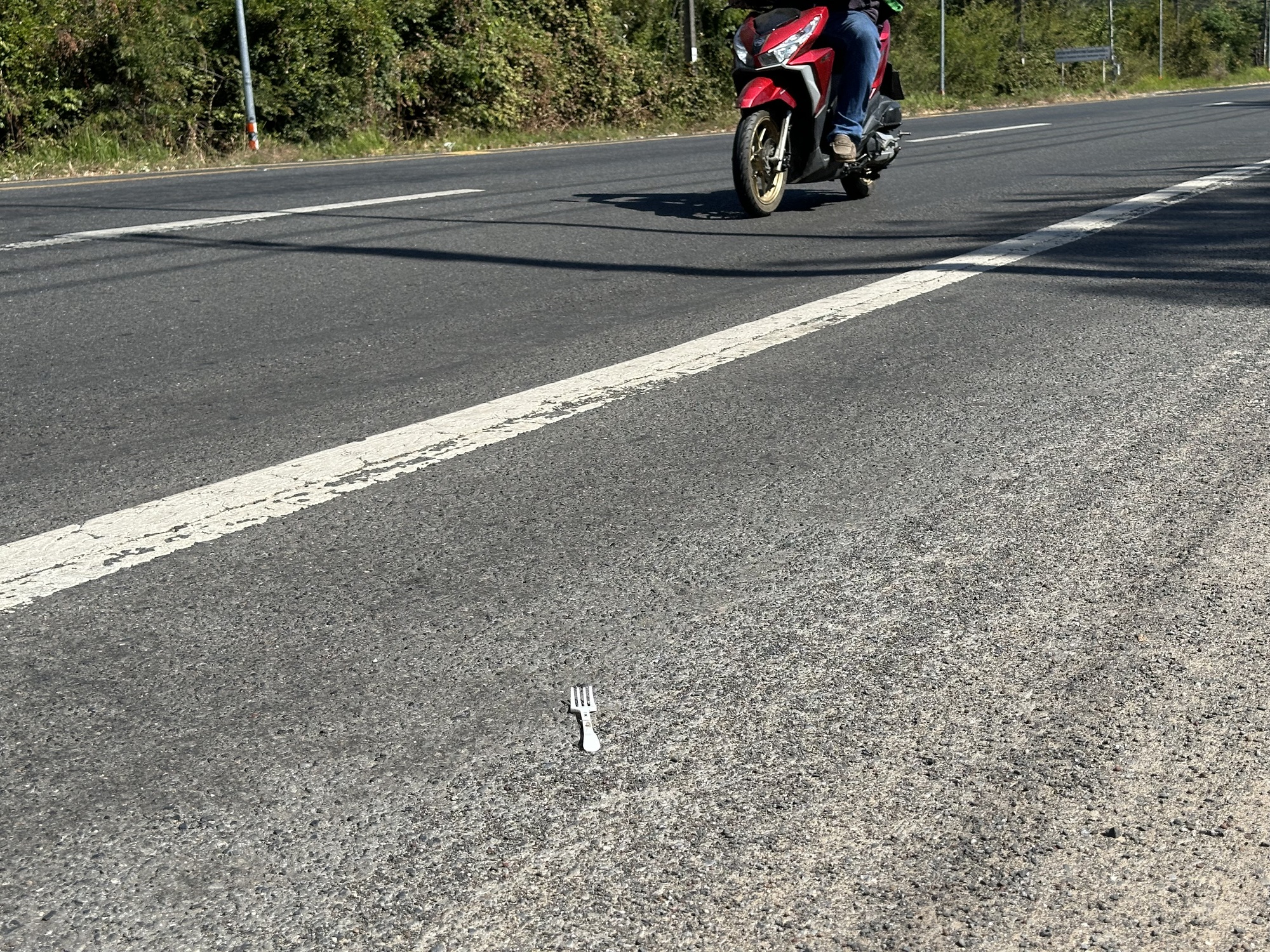 The dirt ended, beautiful smooth asphalt prevailed. This was by far the best road we’d been on during this trip, it’s too bad there was so much noisy traffic. But we were treated well by the drivers, they would pull into the inner lane so as not to buzz us too closely. There are long rollers, and a few small curves in order to cross bridges, but other than that it’s straight west, put your head down, roll.